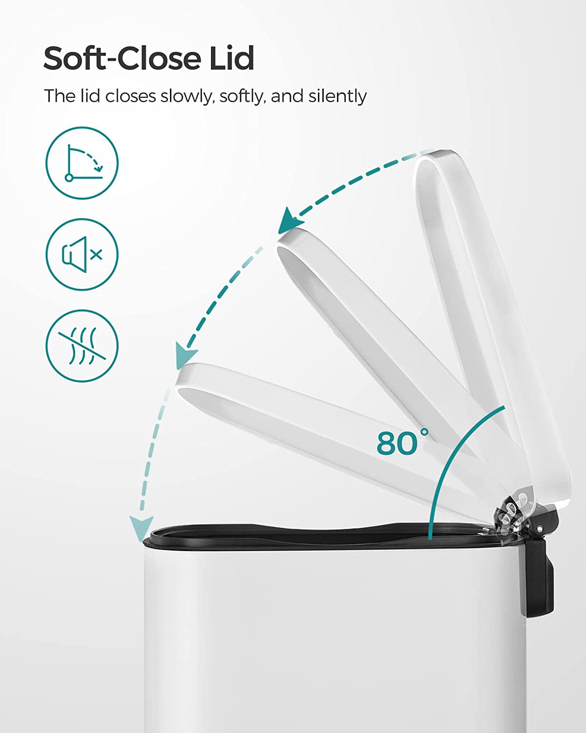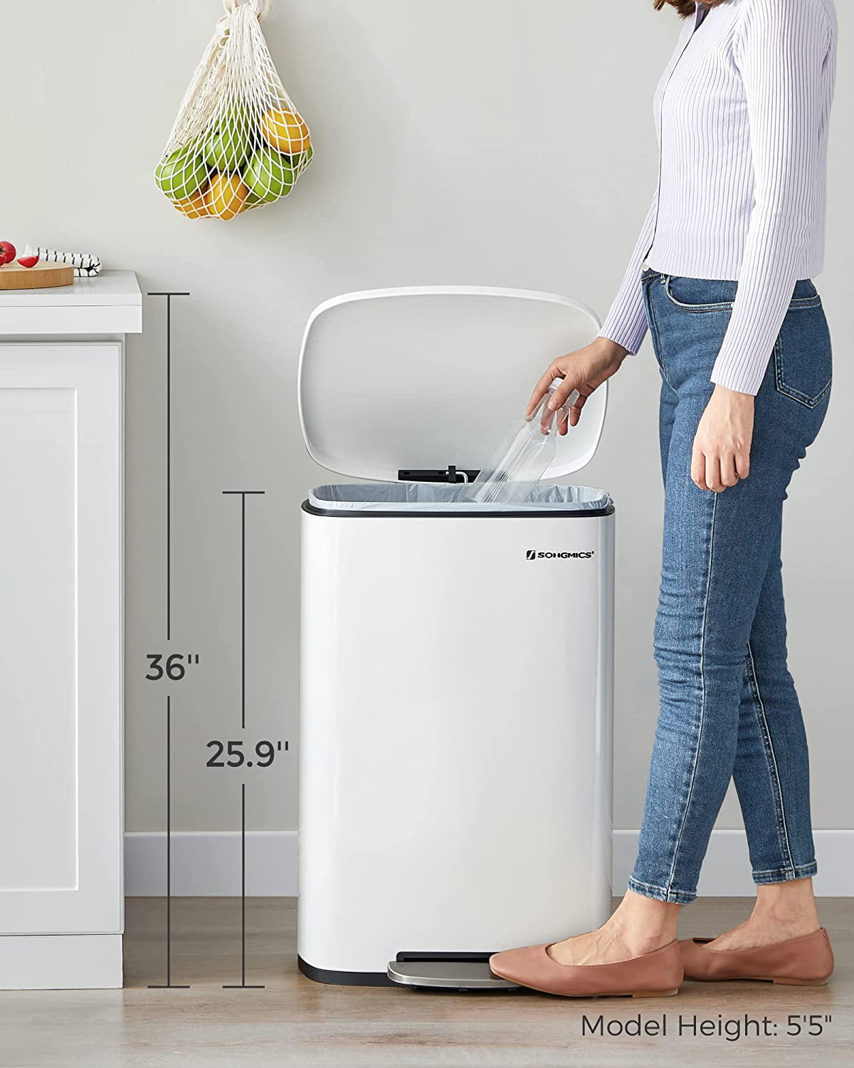 SONGMICS Kitchen Trash Can 13 Gallon (50L) Stainless Steel Garbage Can Pedal Rubbish Bin Recycling or Waste Bin Soft Close Removable Inner Bucket White