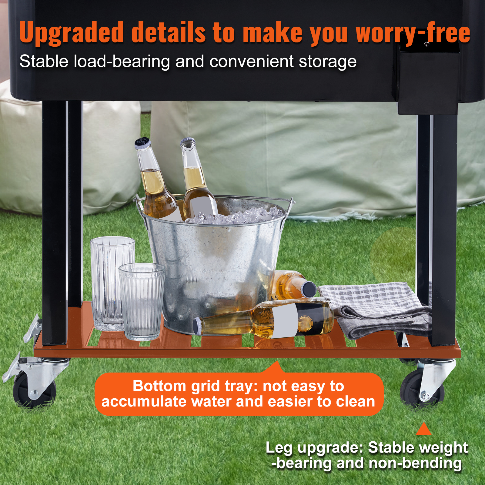 VINGLI 80 Quart Steel Rolling Ice Chest. Cooler Cart with Shelf. Bottle Opener