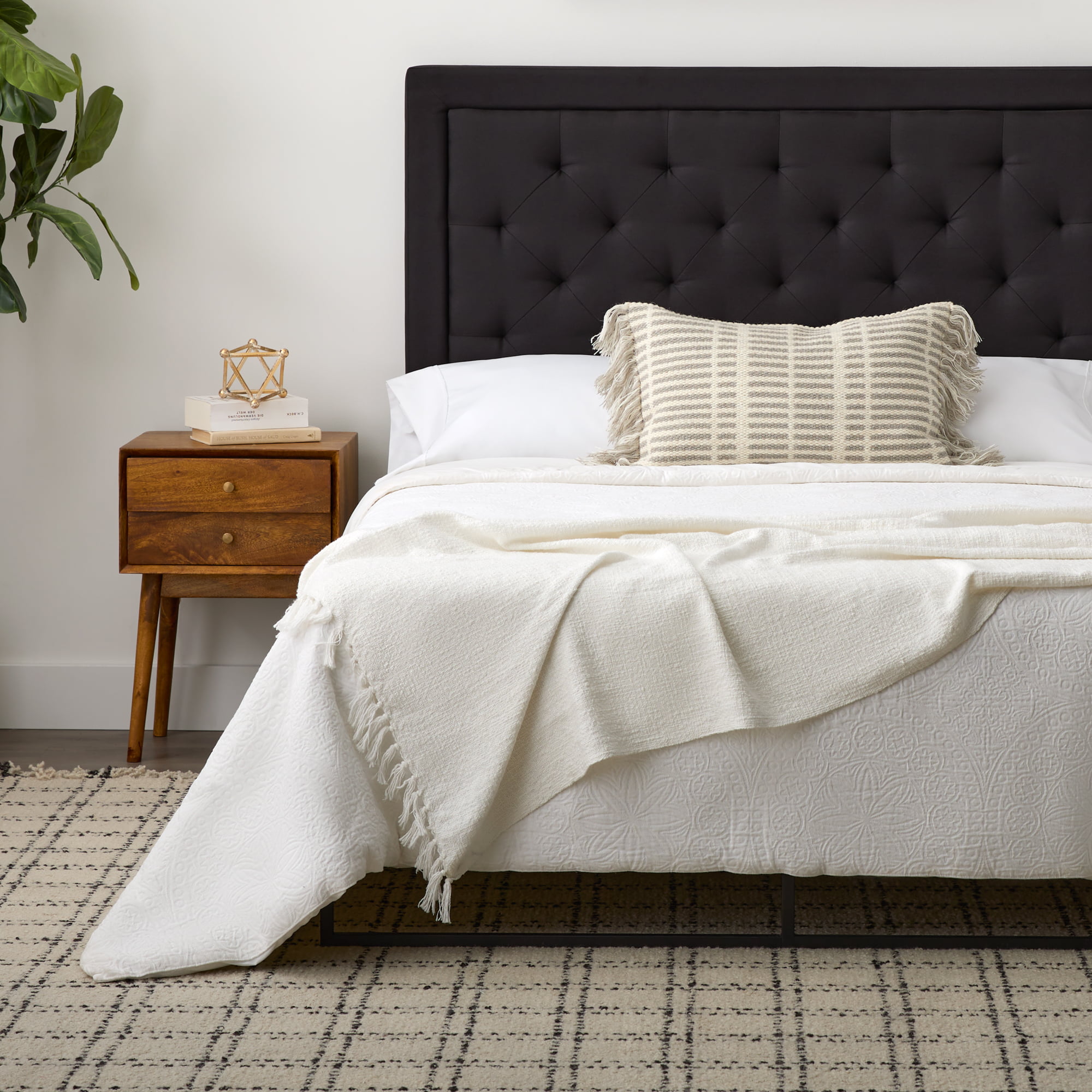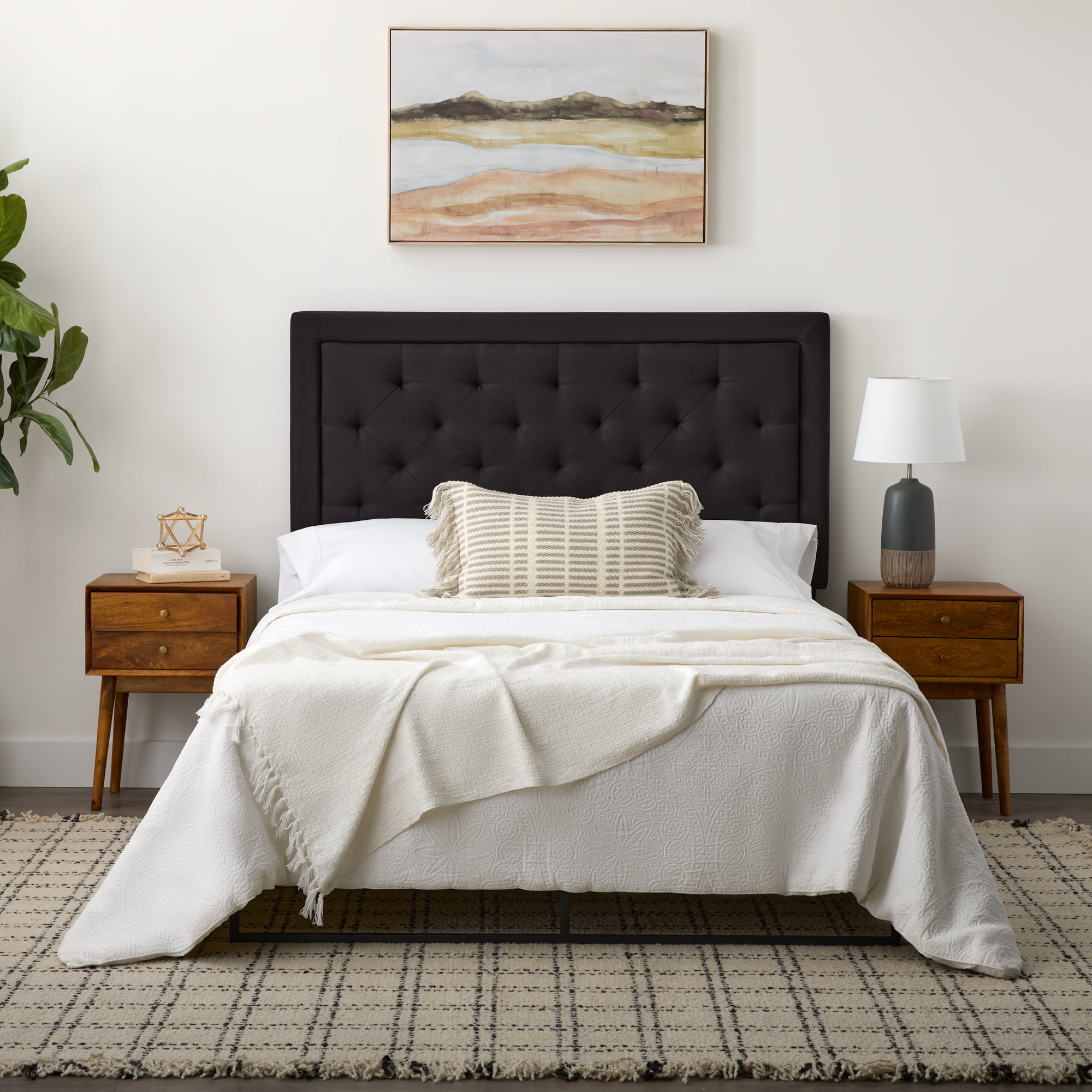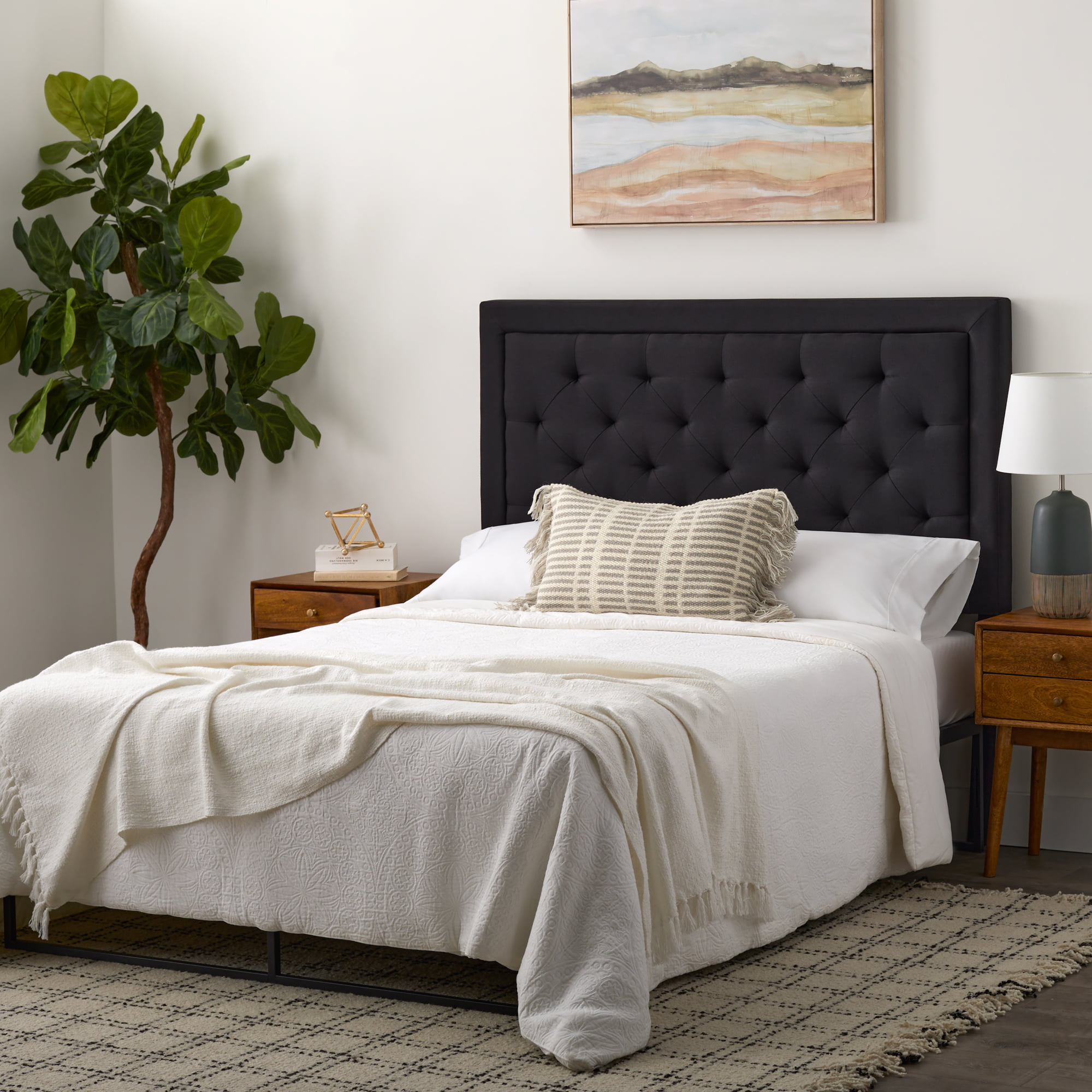 Rest Haven Medford Rectangle Upholstered Headboard with Diamond Tufting. King. Black