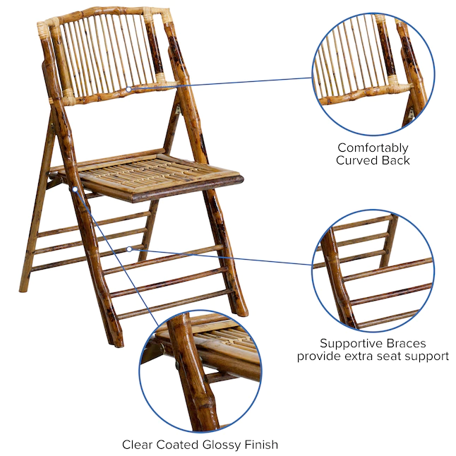 Flash Furniture 4-Pack Bamboo Standard Folding Chair with Solid Seat (Indoor or Outdoor)