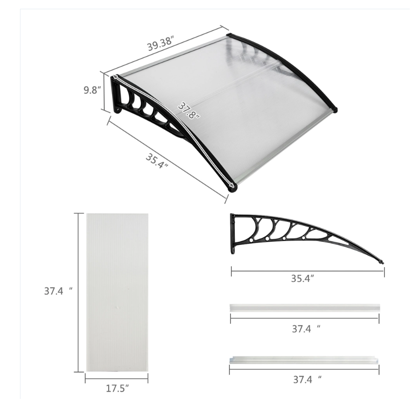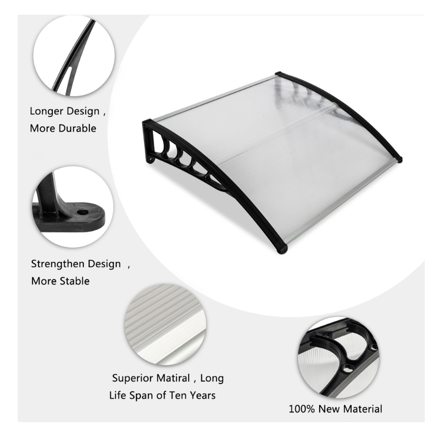 DISCOUNTTODAY 40″x40″ Back Door Canopy Polycarbonate Window Door Awning Outdoor Patio Shelter (Gray)