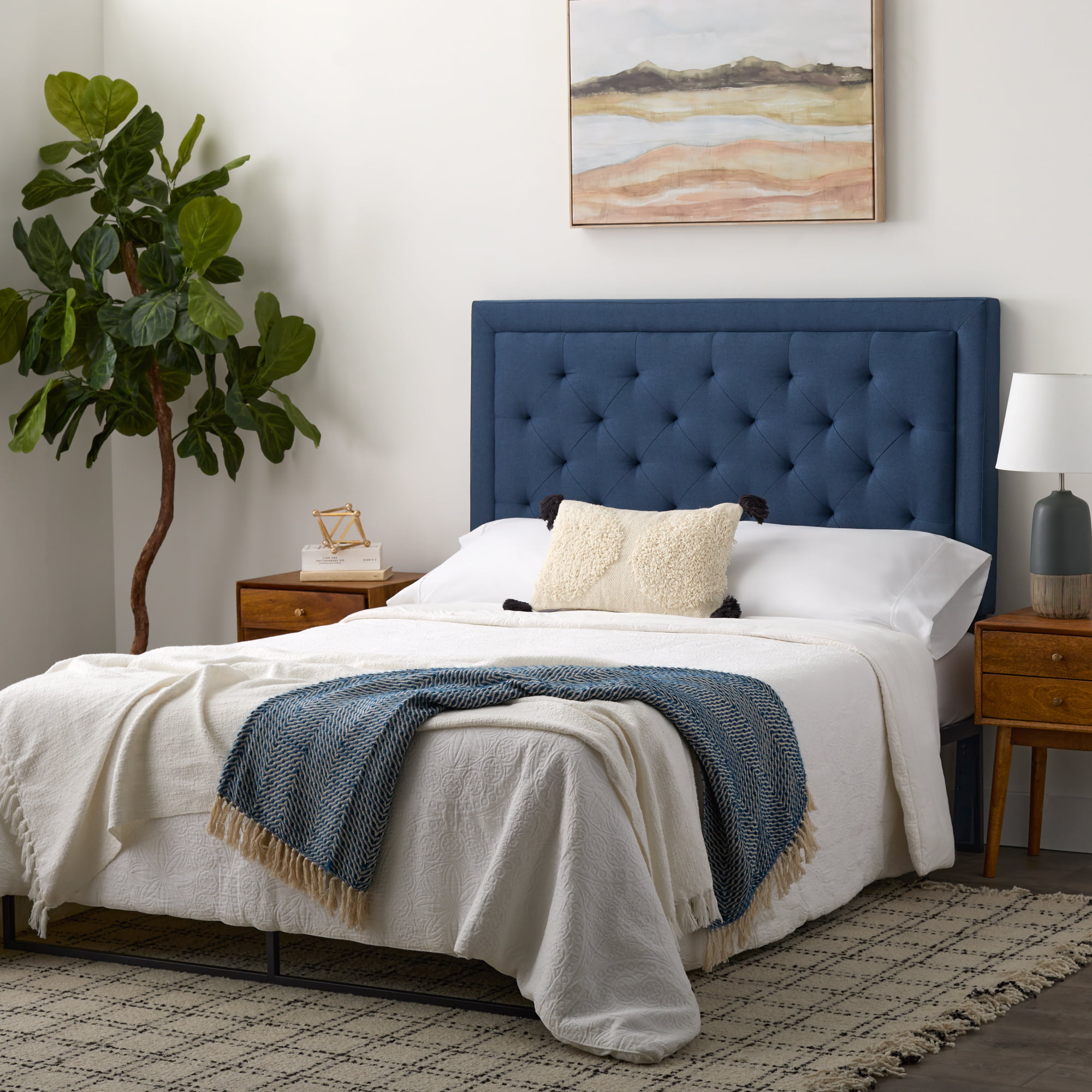 Rest Haven Medford Rectangle Upholstered Headboard with Diamond Tufting. Queen. Navy