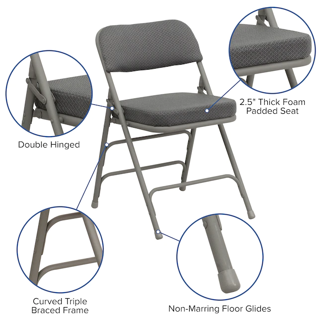 Flash Furniture 2-Pack Gray Fabric/Gray Frame Standard Folding Chair with Padded Seat (Indoor)
