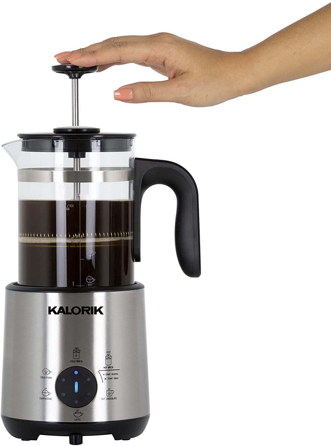 Kalorik Bartista. French Press Coffee Maker Milk Frother 8 in 1 Multi-Use. Stainless Steel