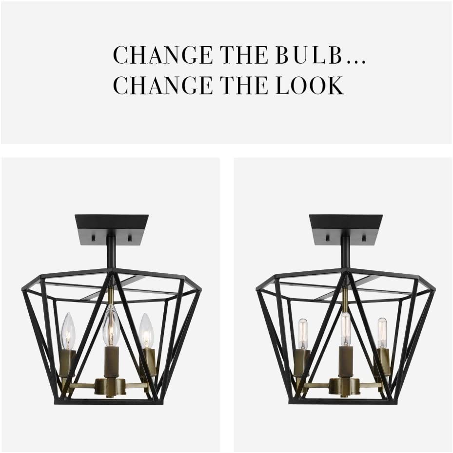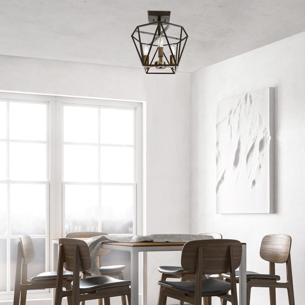 Globe Electric Sansa 3-Light Semi-Flush Mount Ceiling Light. Dark Bronze Finish. Antique Brass Accents