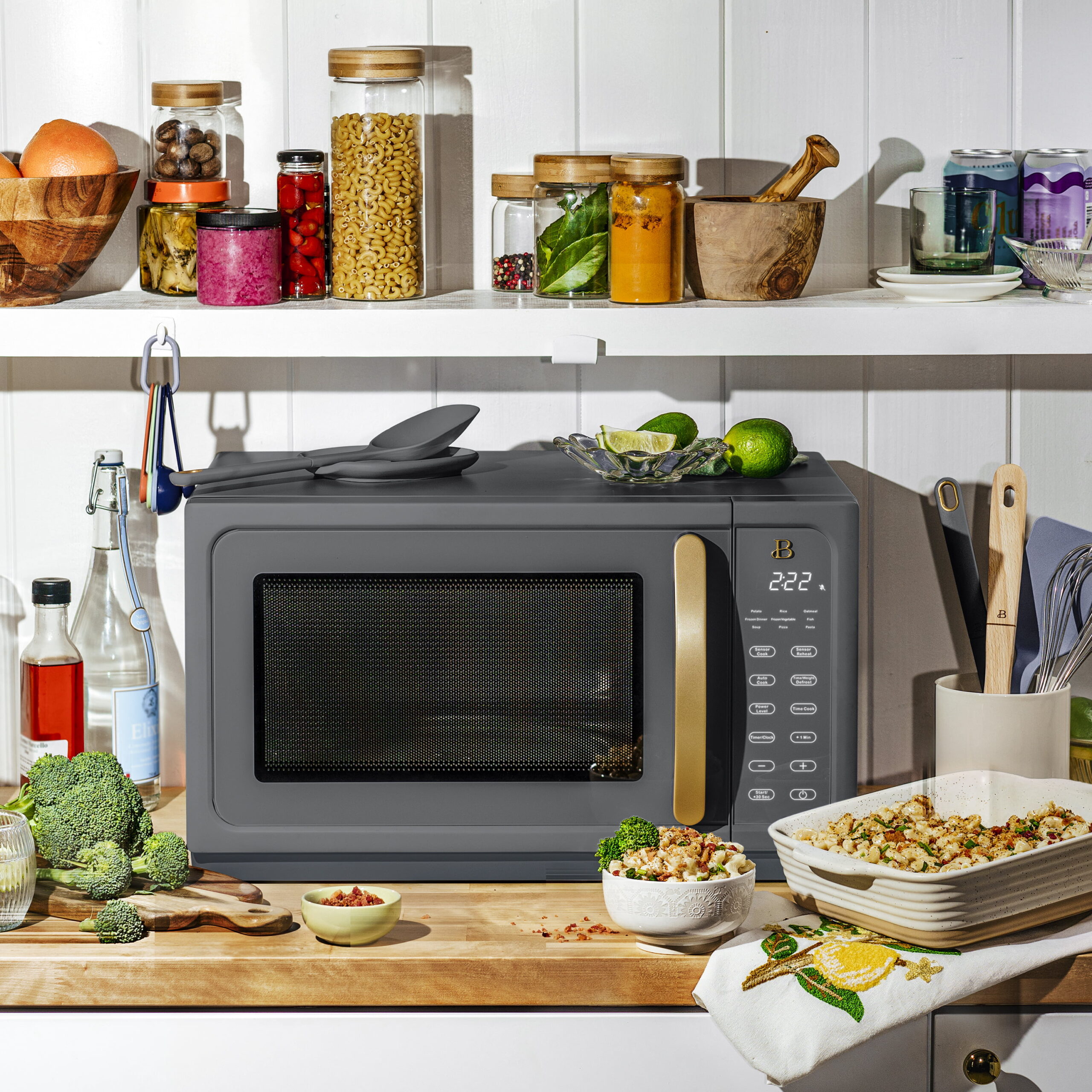 Beautiful 1.1 Cu ft 1000 Watt. Sensor Microwave Oven Oyster Grey by Drew Barrymore
