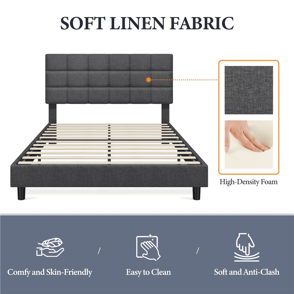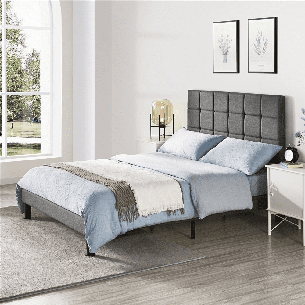 Alden Design Upholstered Tufted Platform Full Bed. Dark Gray