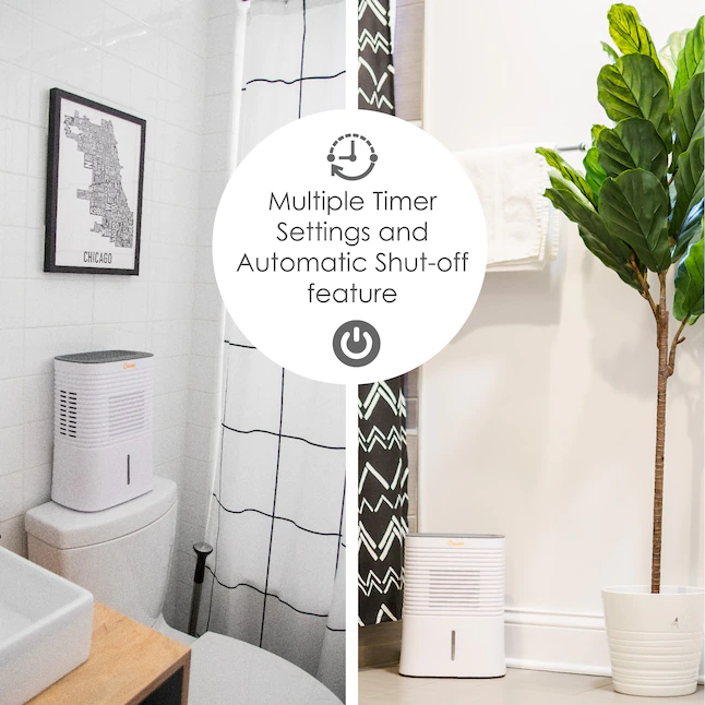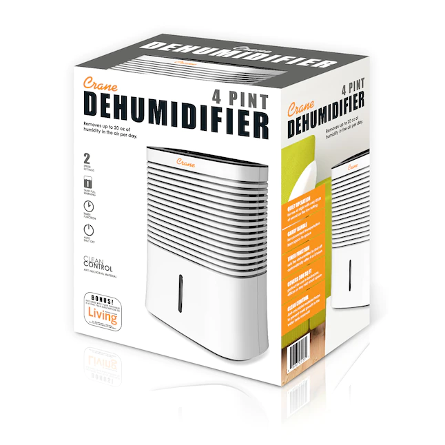 Crane 1.25-Pint 2-Speed Dehumidifier. Compact Portable Design. Effective Moisture Removal up to 300 Sq. Feet. 0.5 Gallon – 2 Liter Water Tank. White