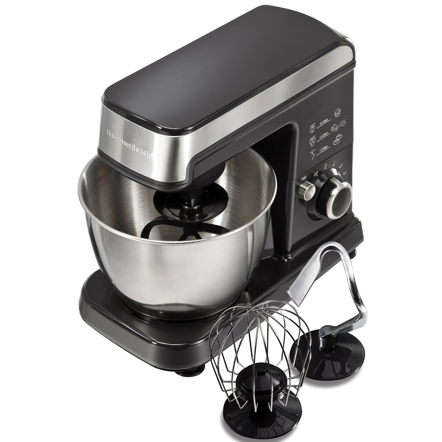Hamilton Beach 4 qt. 7-speed Black Stand Mixer with Dough Hook. Whisk and Flat Beater Attachments