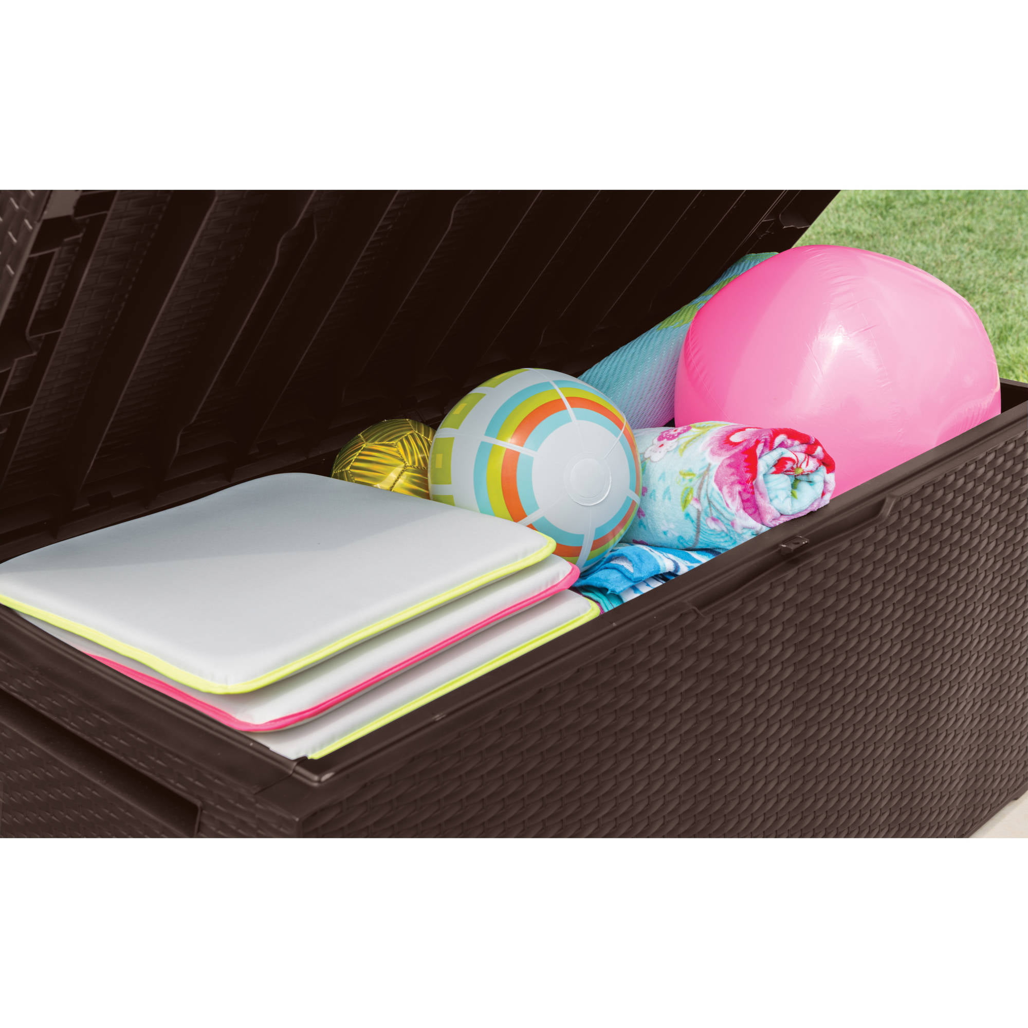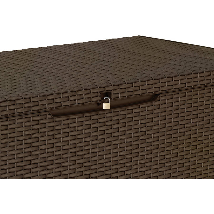 Keter Capri Rattan Resin 80-Gal Outdoor Storage Plastic Deck Box. Espresso Brown