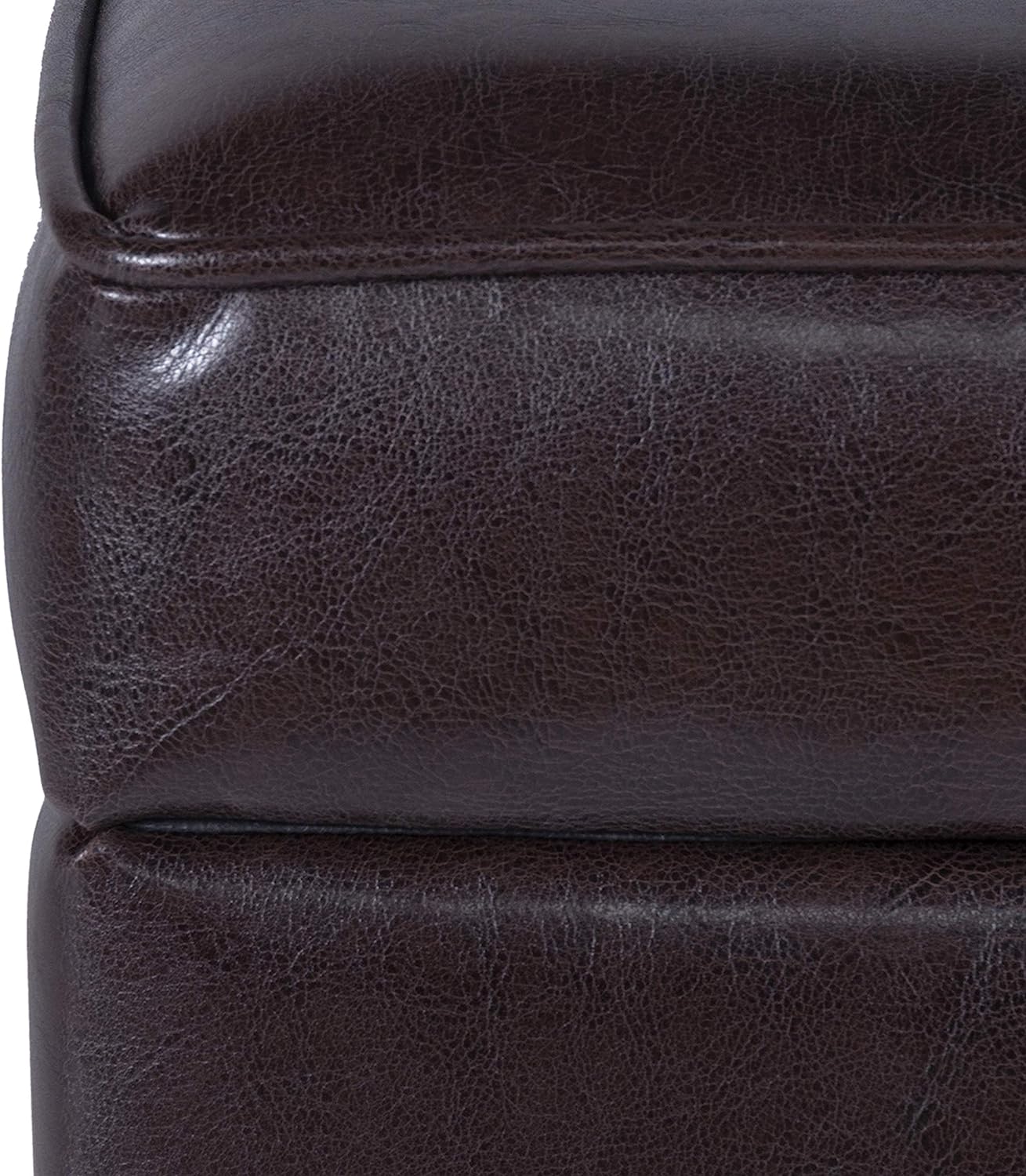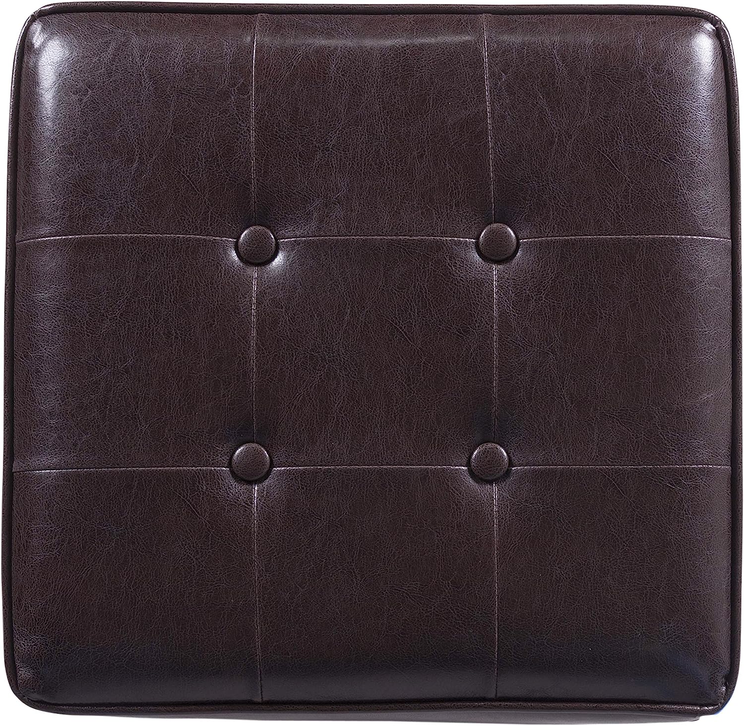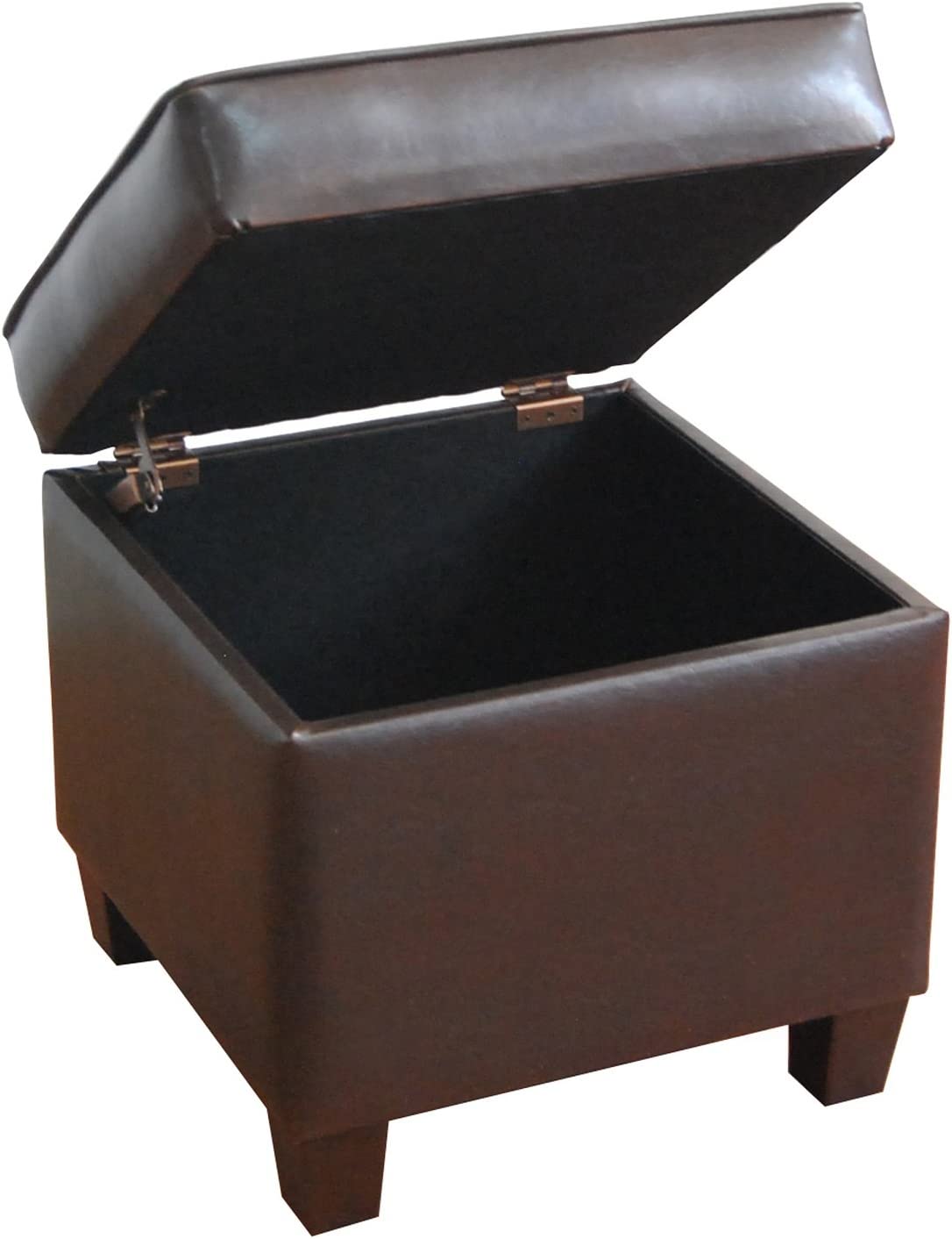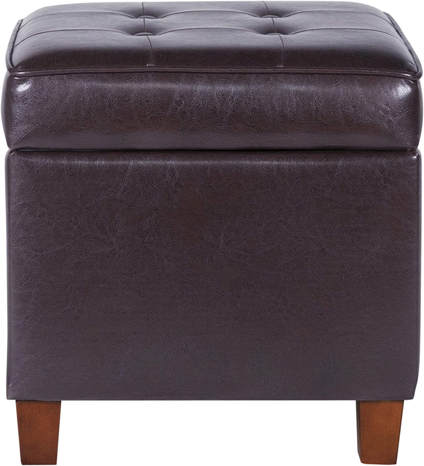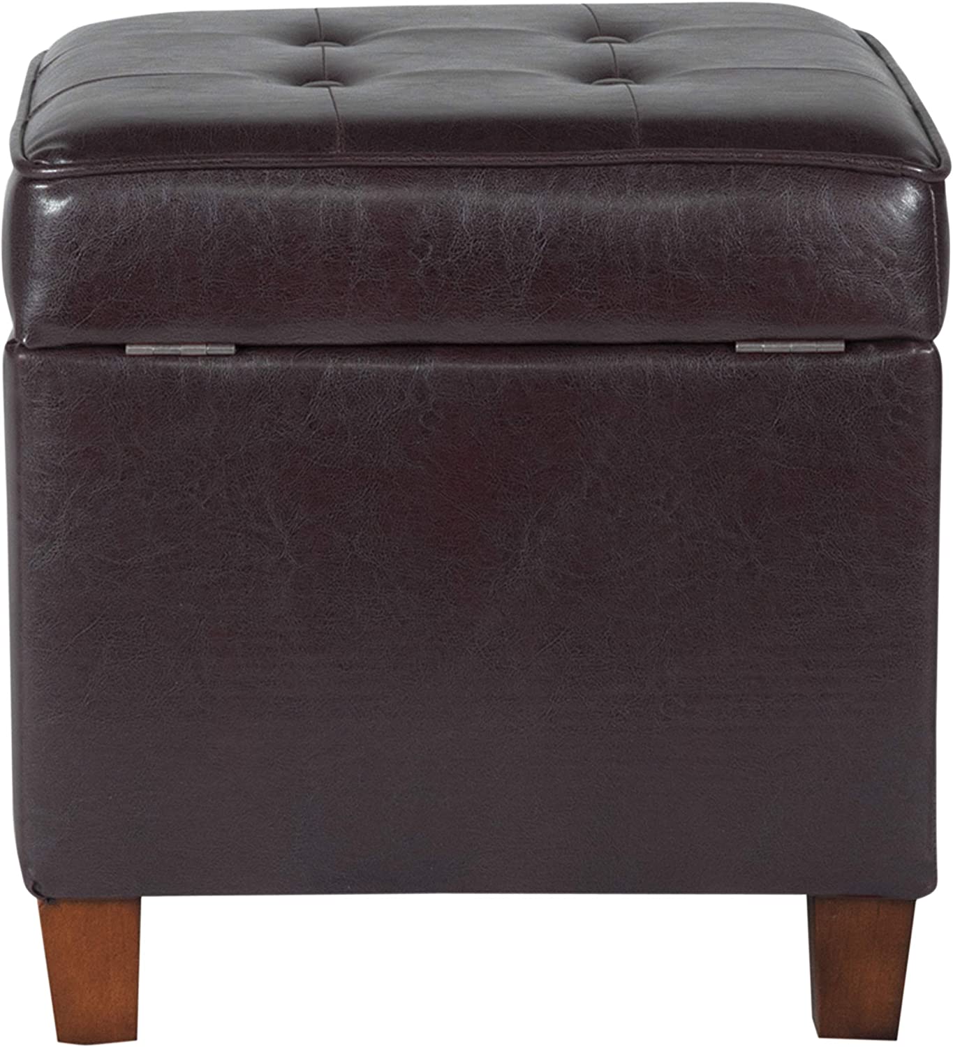 HomePop Leatherette Tufted Square Storage Ottoman with Hinged Lid. Brown