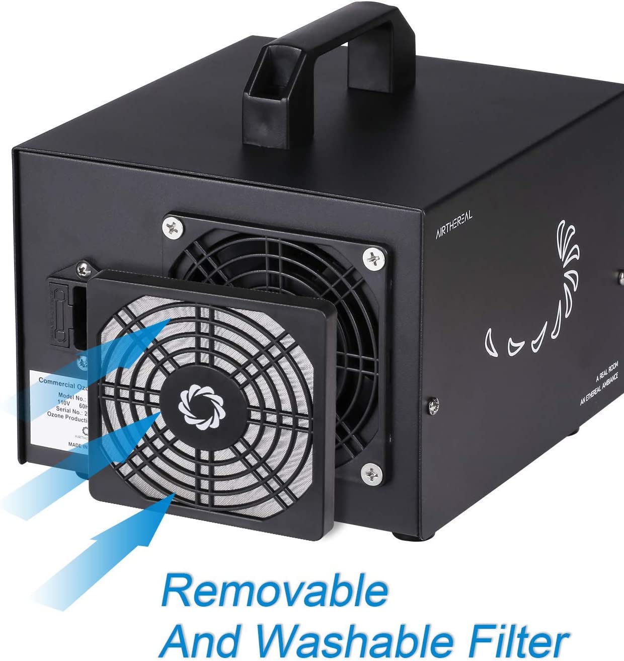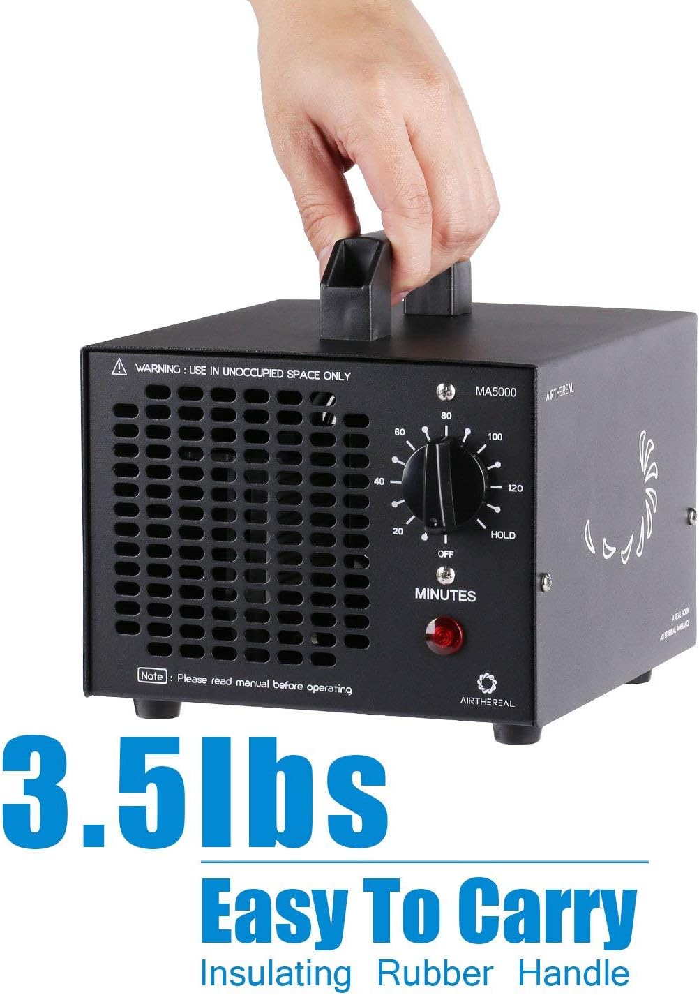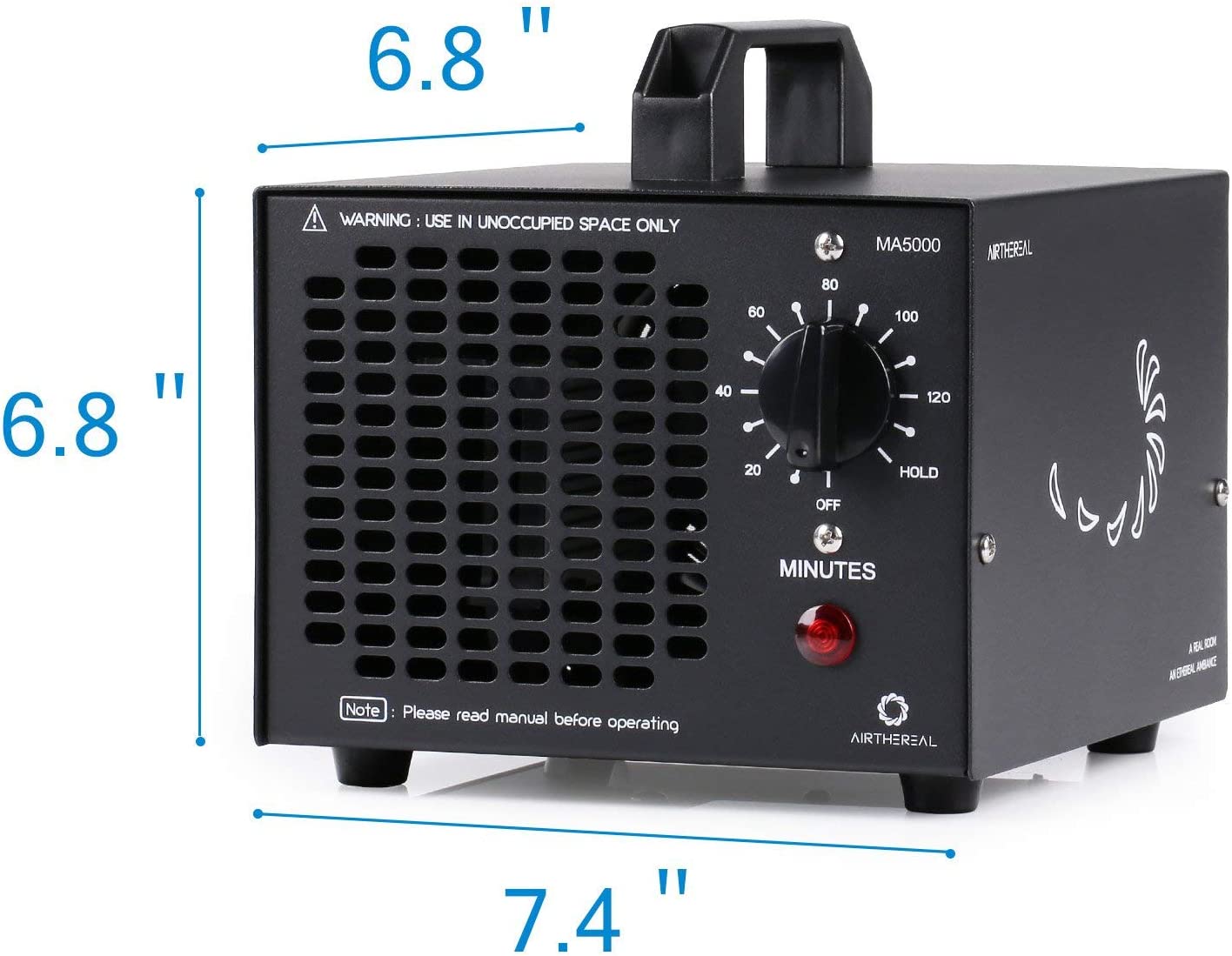 AIRTHEREAL MA5000 Commercial Ozone Generator 5000mg/h O3 Machine Home Air Ionizers Deodorizer for Rooms. Smoke. Cars and Pets. Black