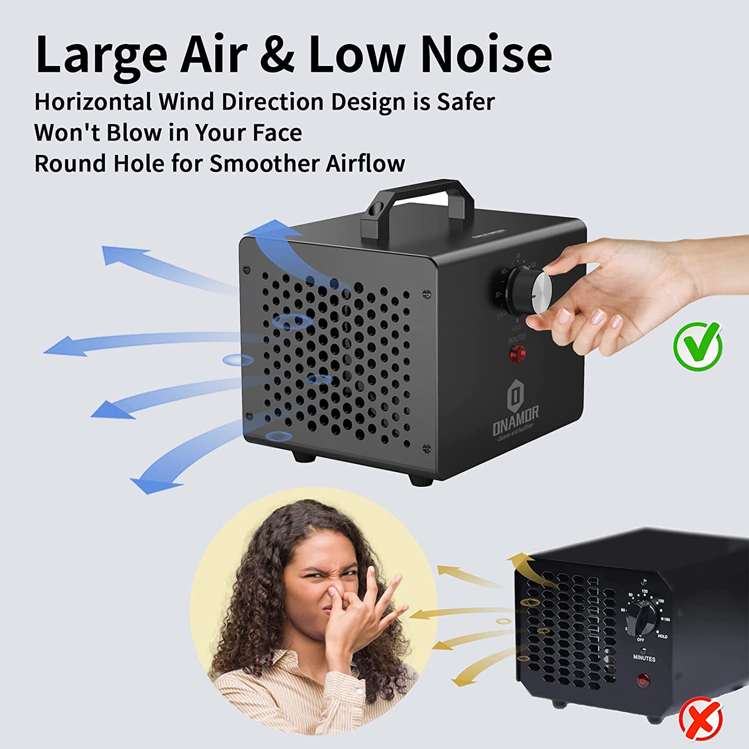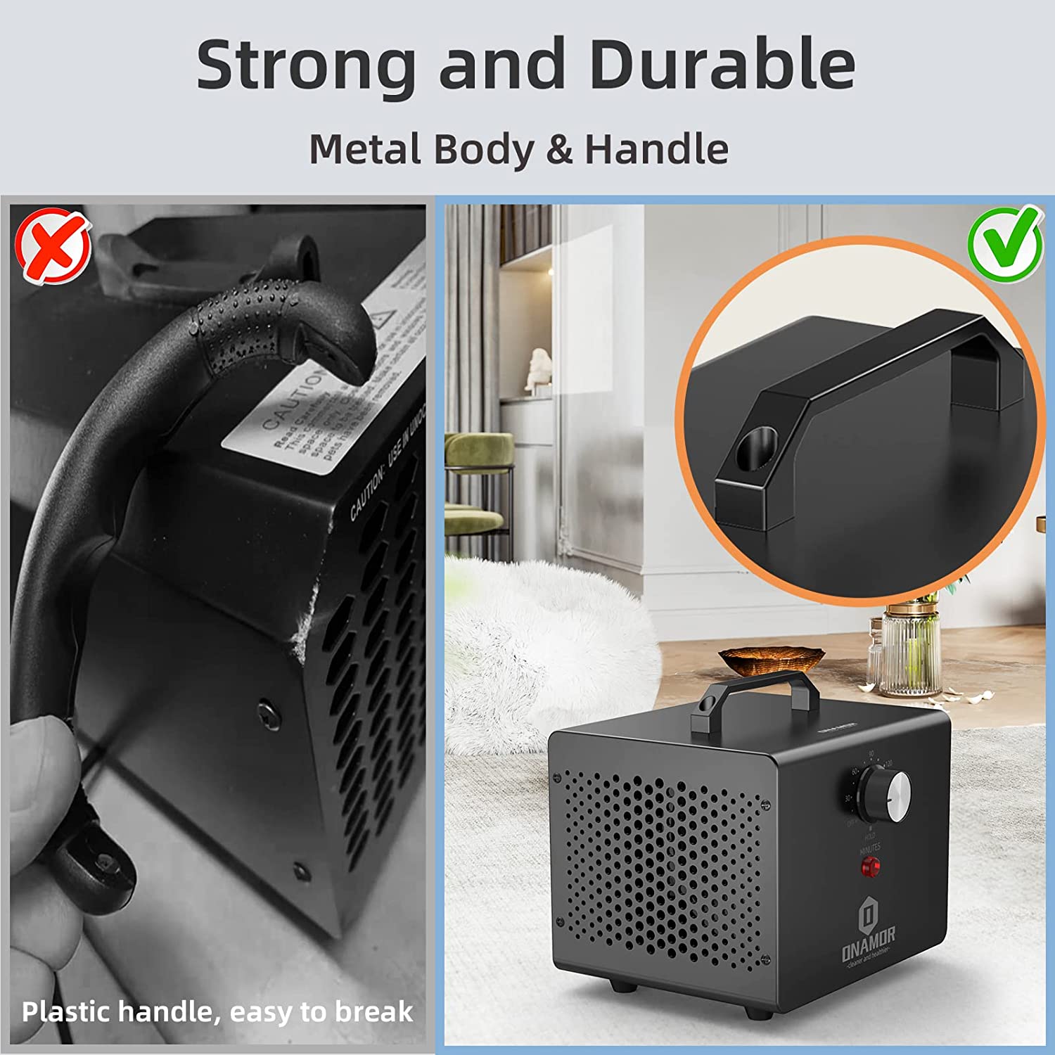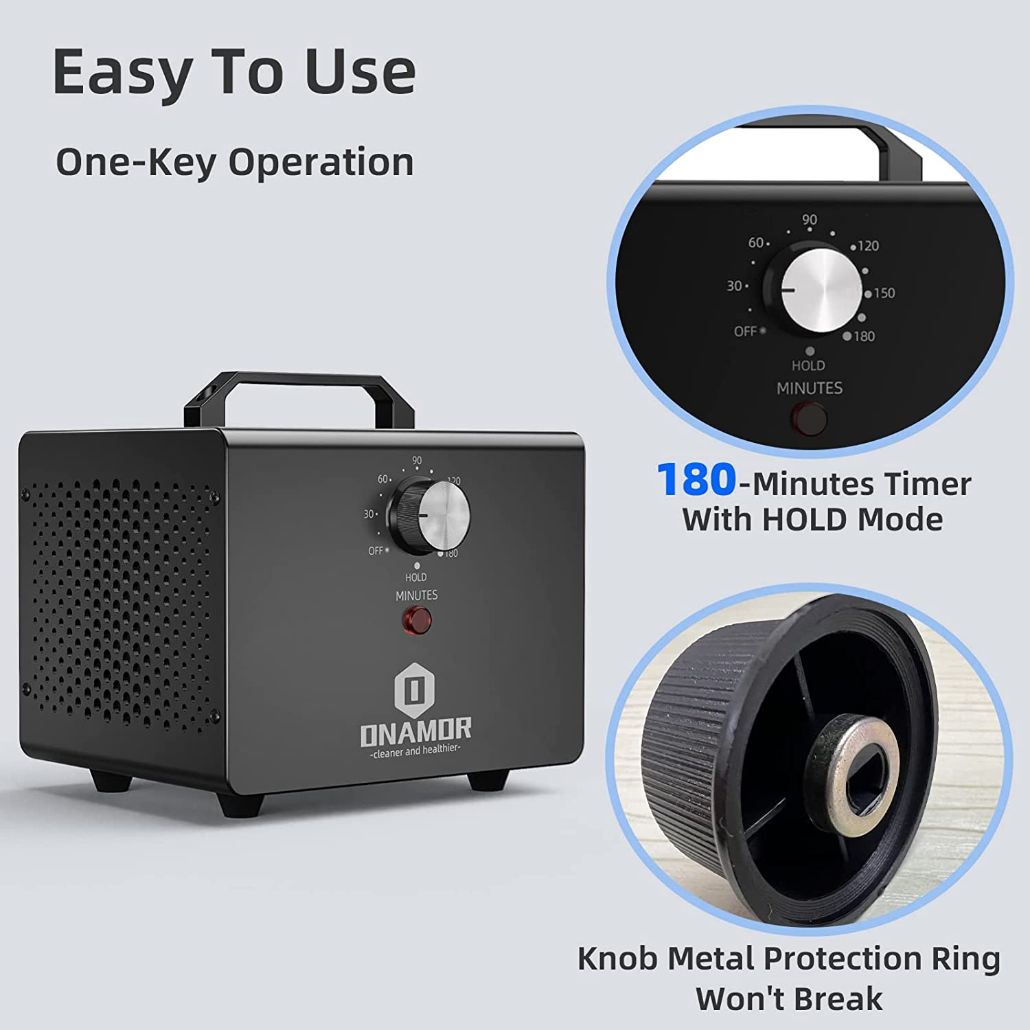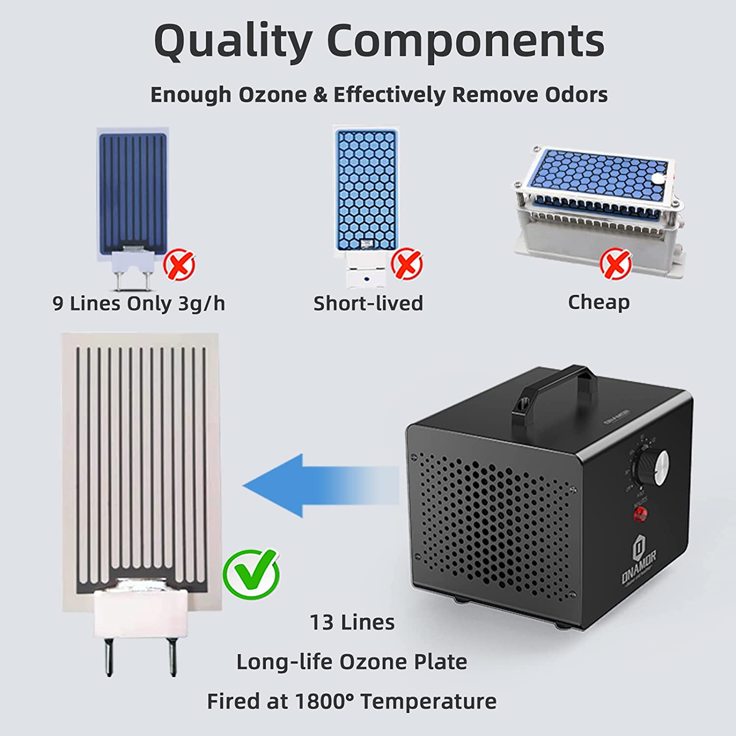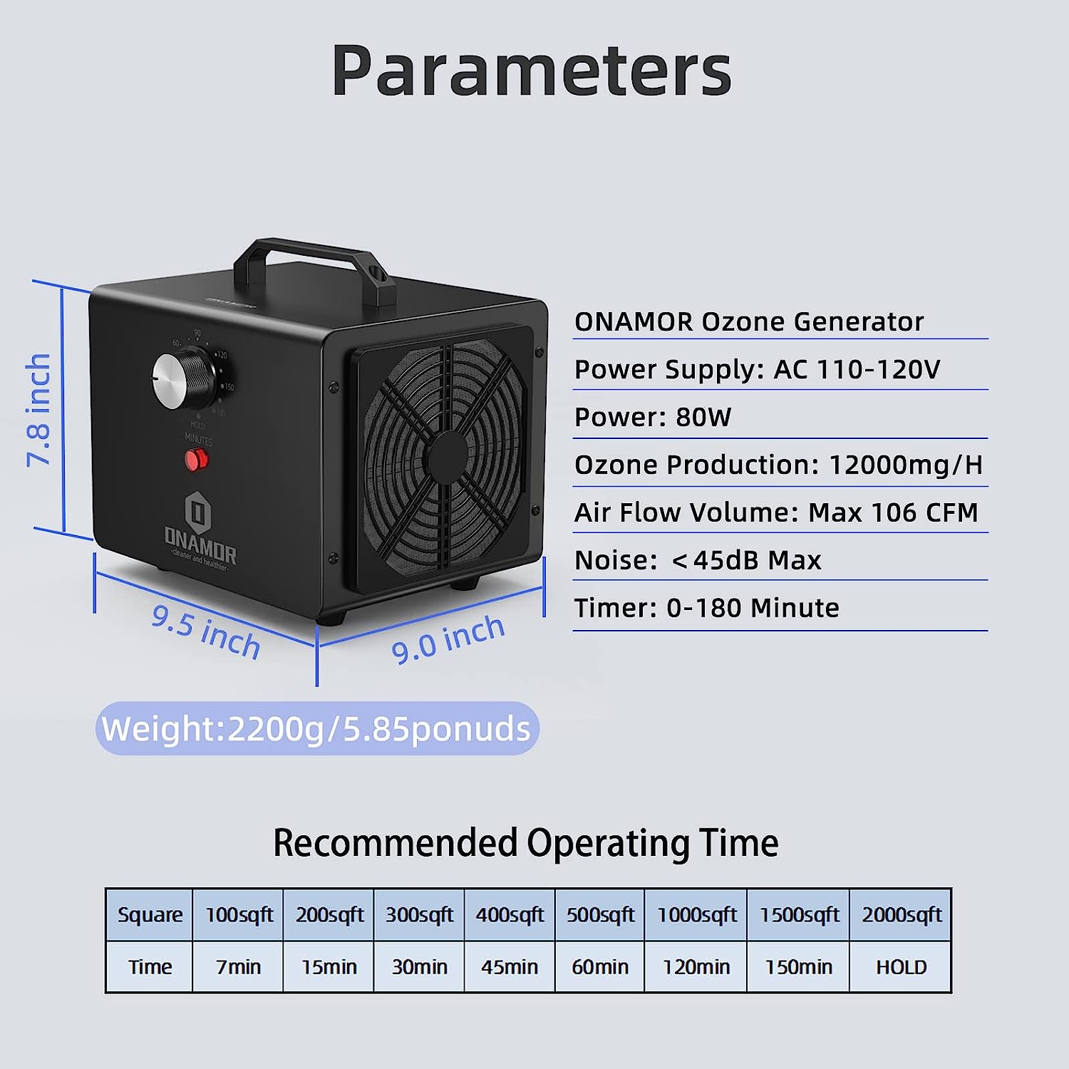 ONAMOR Ozone Generator 12000mg/h - Ozone Machine Ionizer & O3 Deodorizer for Home. Basement. Smoke. and Pet Room. (Eliminating Odors Area up to 2000 Square Feet - All Metallic Black)