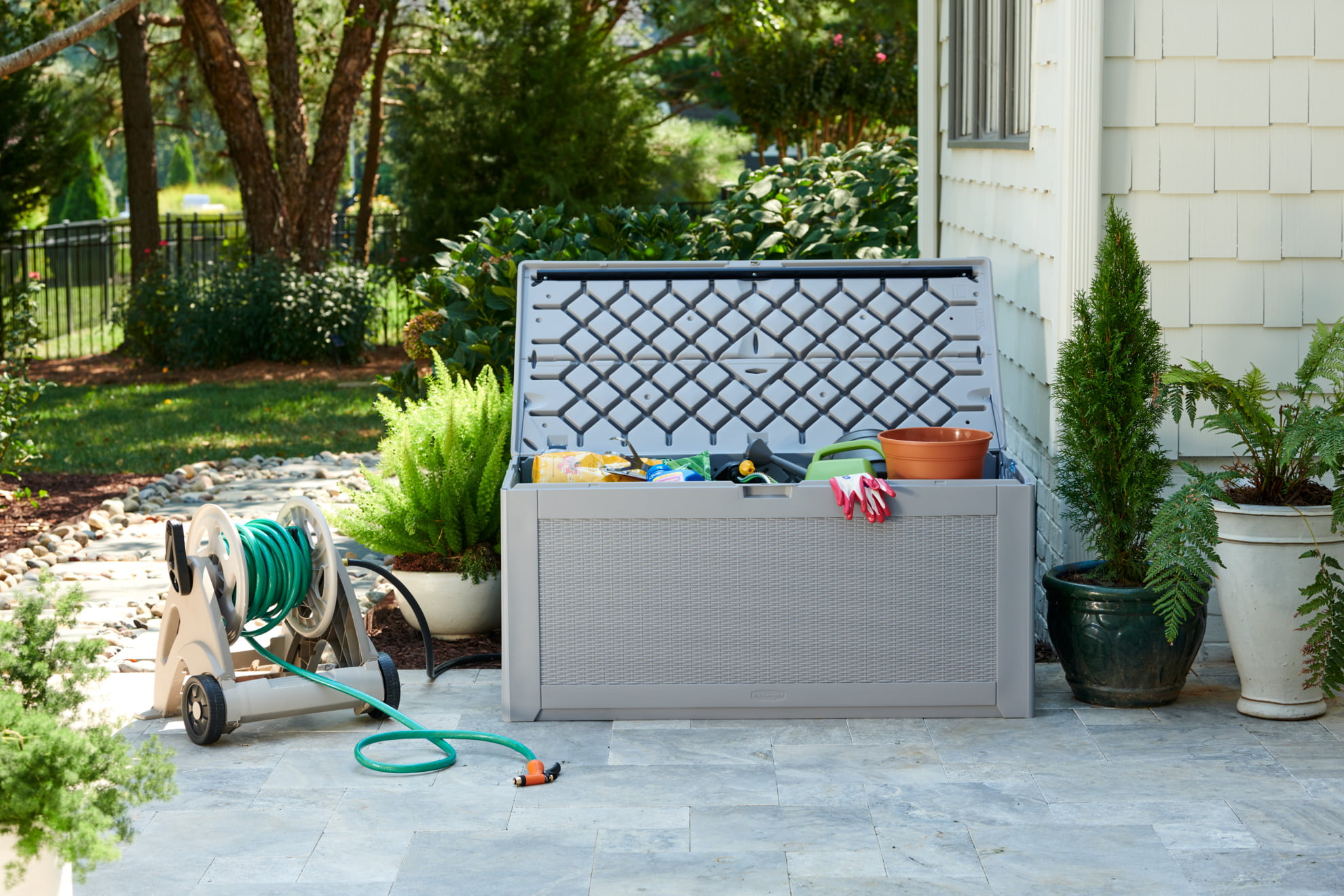 Rubbermaid Deck Box. Extra Large. 134 Gallon. Light Grey