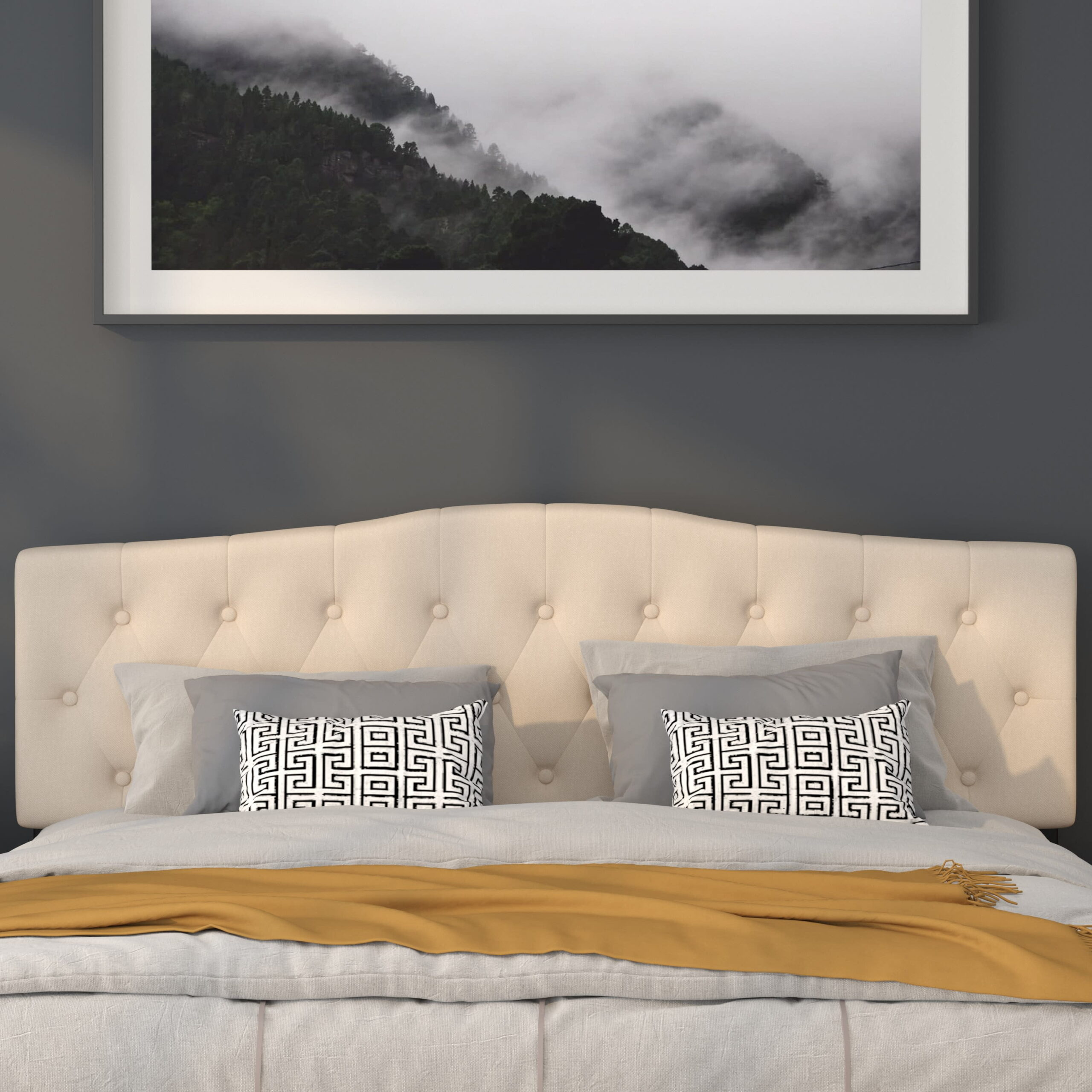 Flash Furniture Cambridge Tufted Upholstered King Size Headboard in Beige Fabric