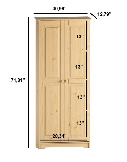 Solid Wood Pantry Storage Cabinet. Freestanding Kitchen Cupboard. Closet with Shelves