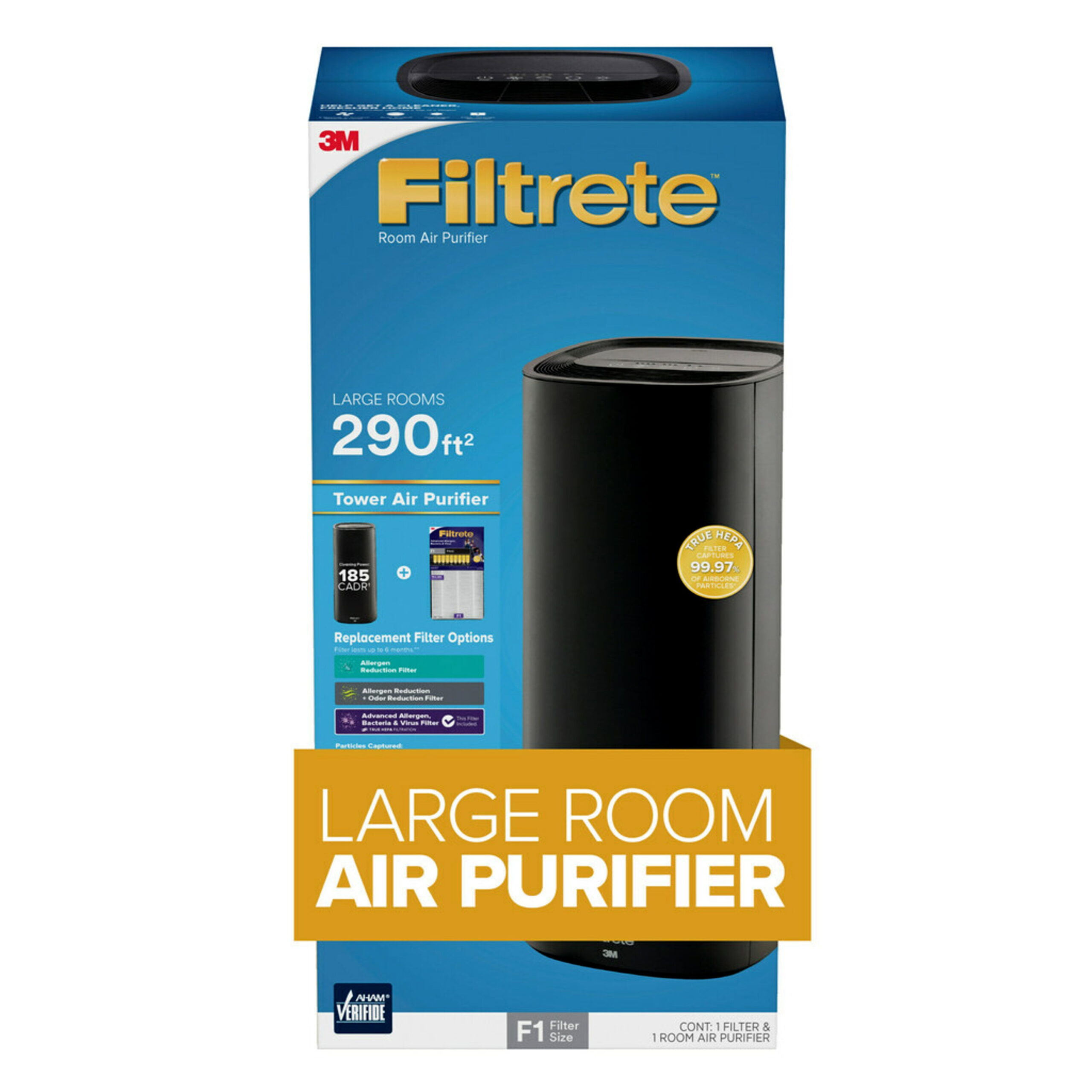 Filtrete by 3M Air Purifier. Large Room Tower. 290 Sq gt Coverage. Black. TRUE HEPA Filter Included
