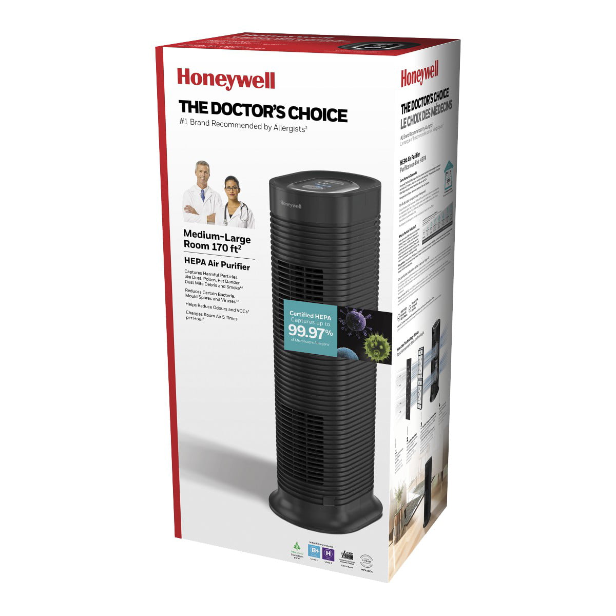Honeywell AllergenPlus HEPA Tower Air Purifier. Airborne Allergen Reducer for Small Rooms (75 sq ft). Black - Wildlfire/Smoke. Pollen. Pet Dander. and Dust Air Purifier. HPA060