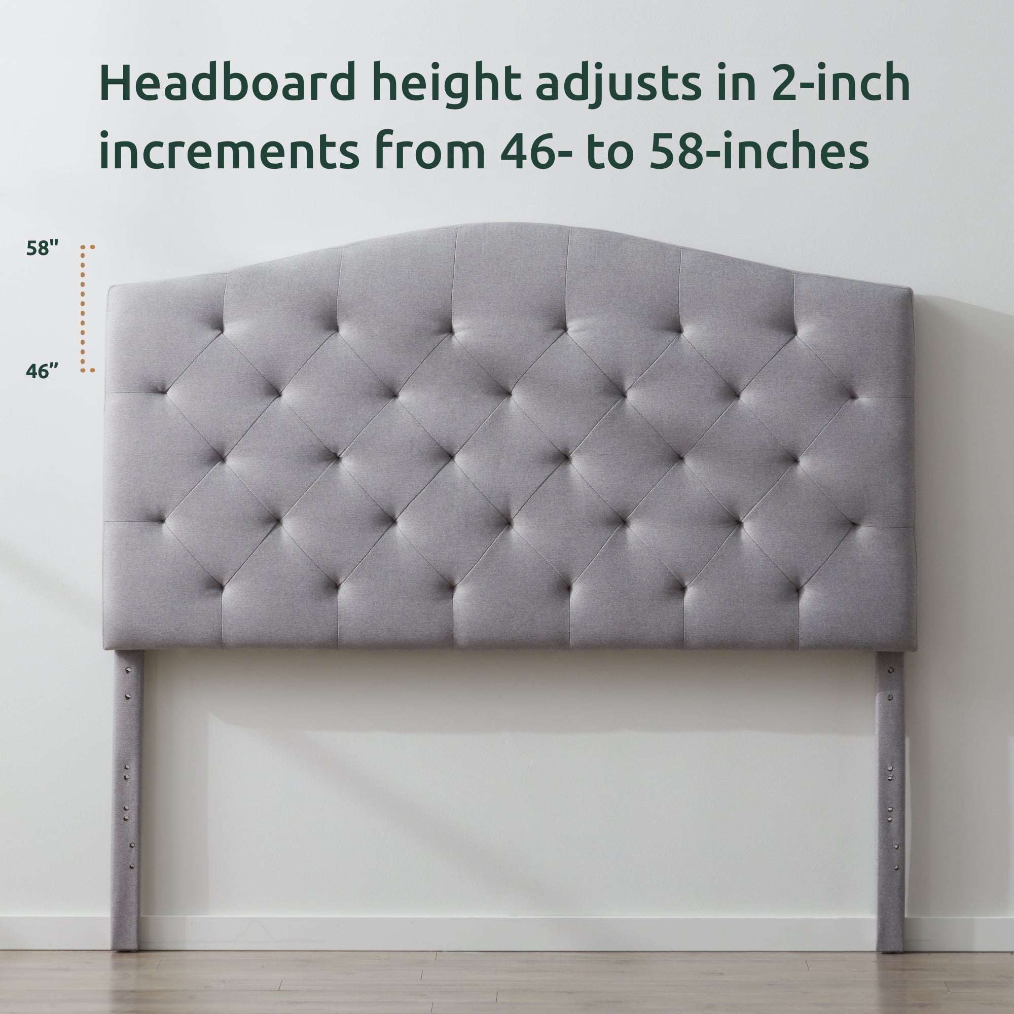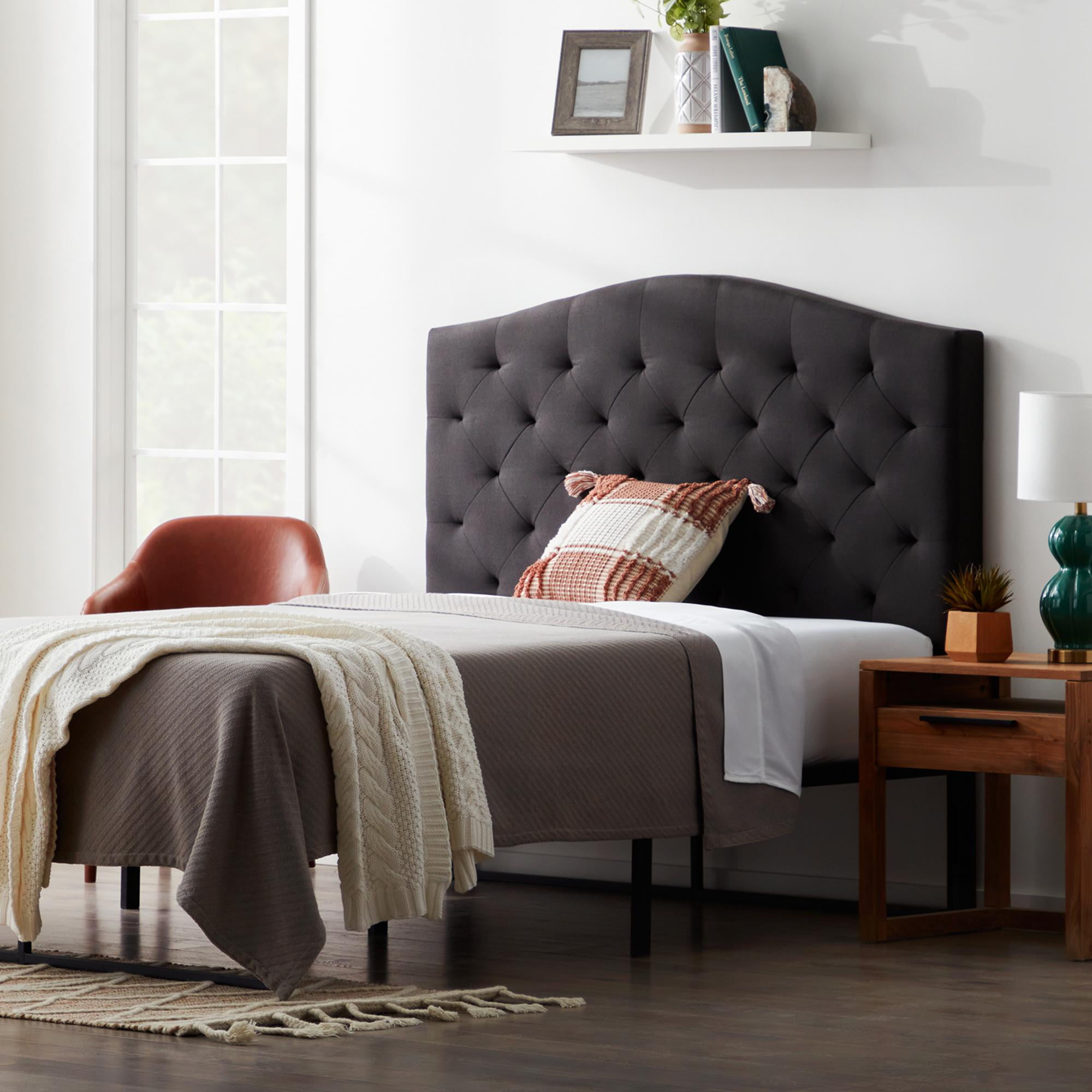 Rest Haven Hillboro Curved Edge Upholstered Headboard. Queen. Charcoal