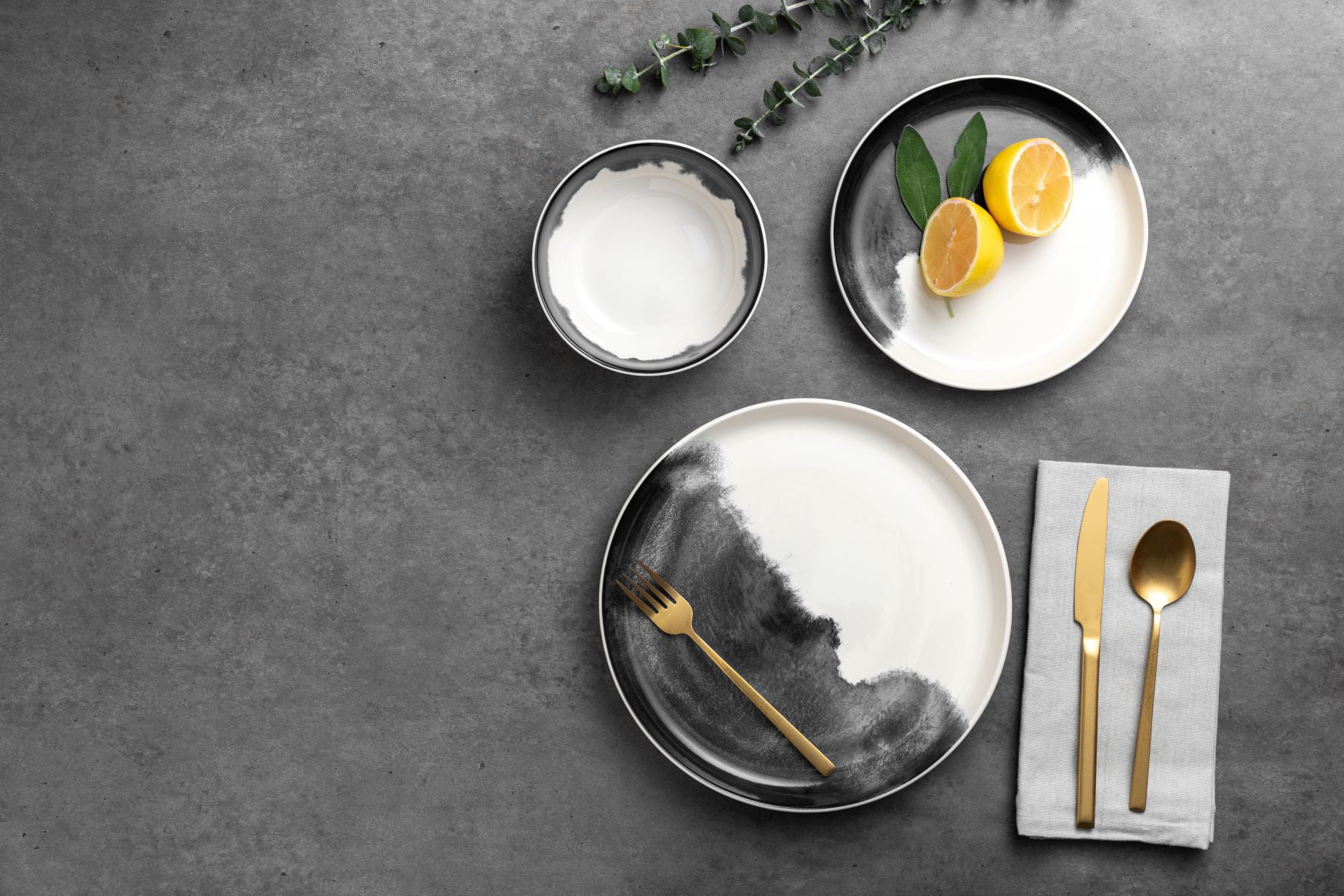 Thyme & Table Dinnerware Grey Drip Stoneware. 12 Piece Set