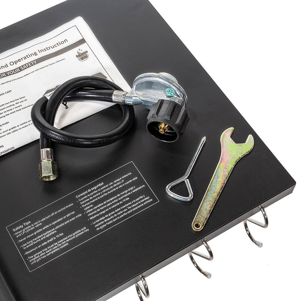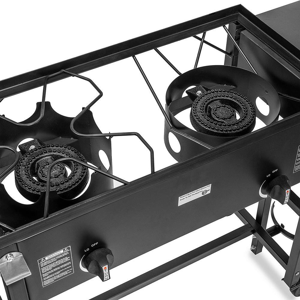 XtremepowerUS 95534-H2 45 in. Portable Outdoor Gas Propane Double Burner Grill BBQ Station in Black w/ Flat Top Griddle & Foldable Side Shelves
