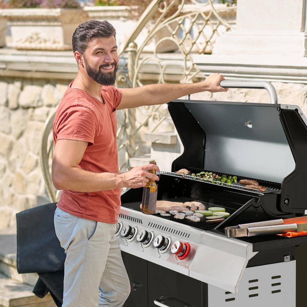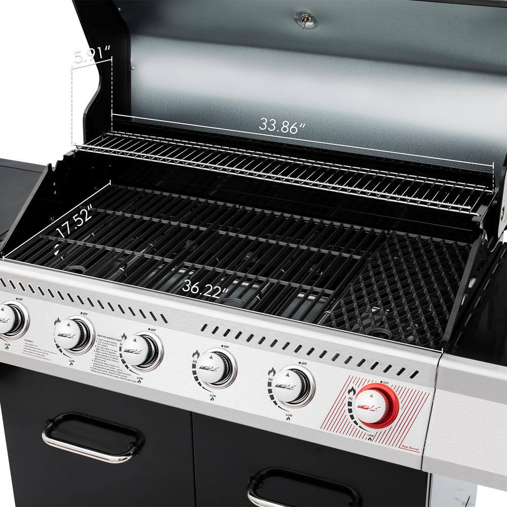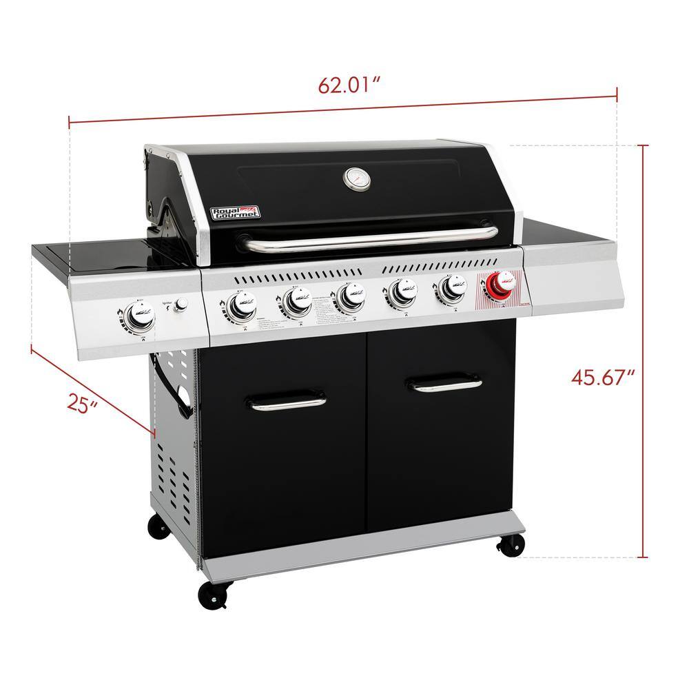 Royal Gourmet GA6402H 6-Burner BBQ Liquid Propane Gas Grill with Sear Burner and Side Burner. 74.000 BTU. Cabinet Style Grill in Black