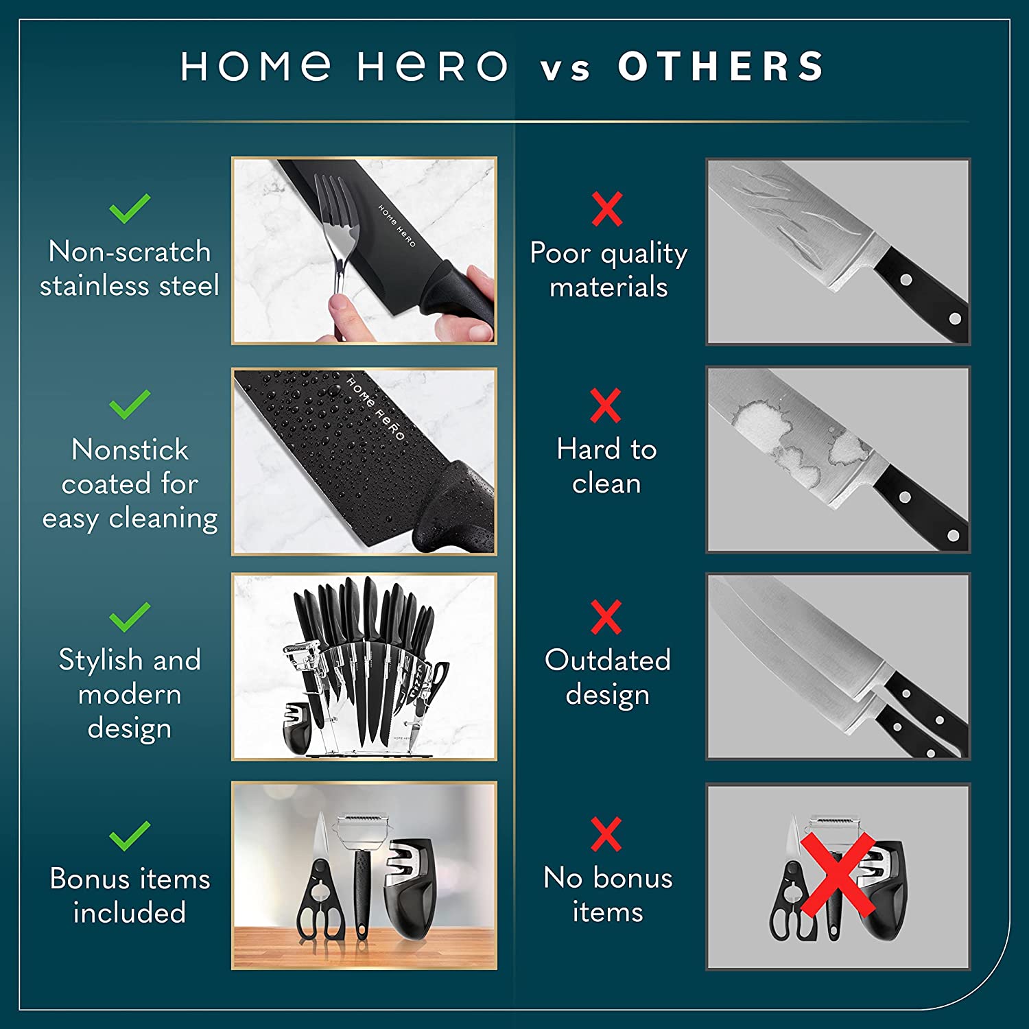 Home Hero Kitchen Knife Set - 17 piece Chef Knife Set with Stainless Steel Knives Set for Kitchen with Accessories