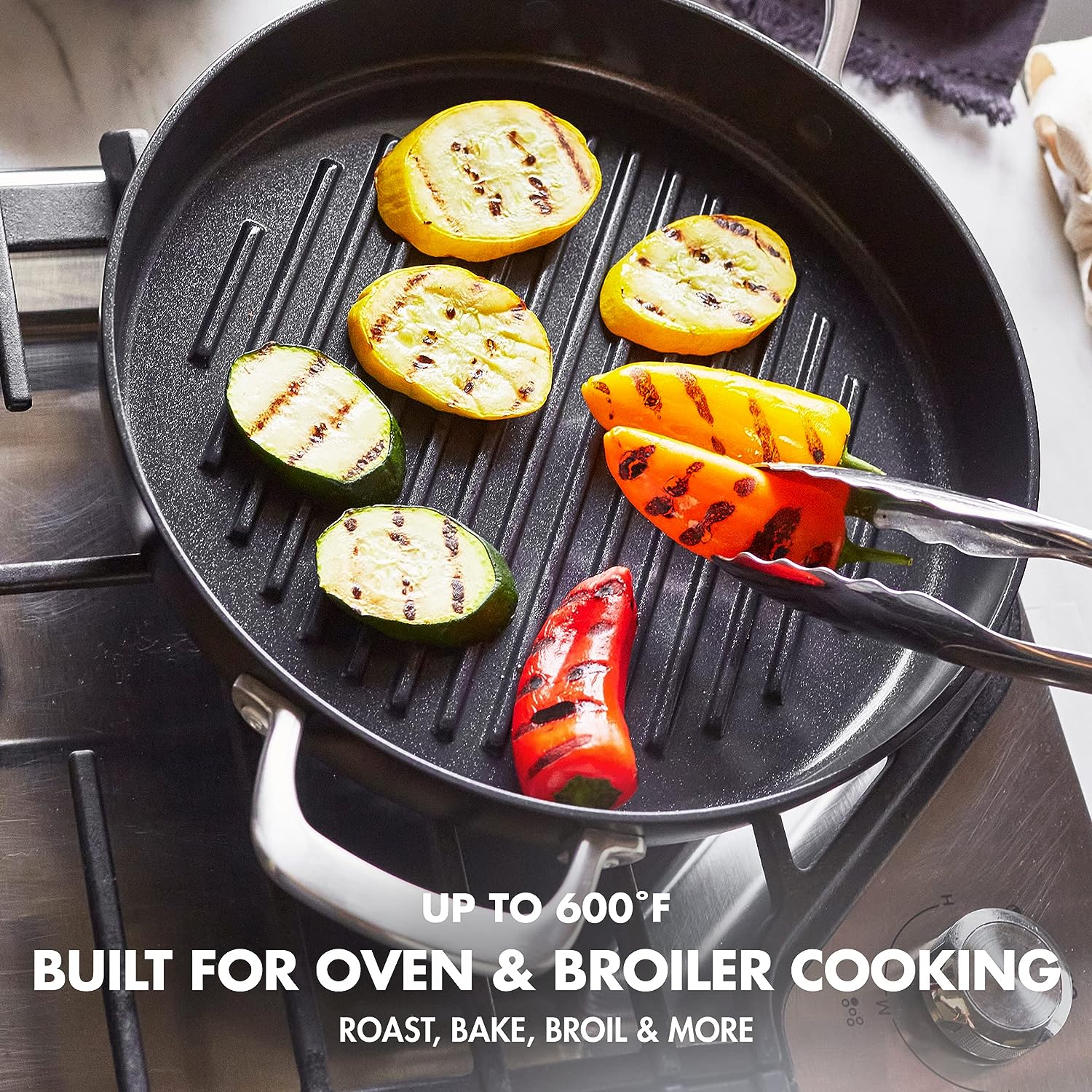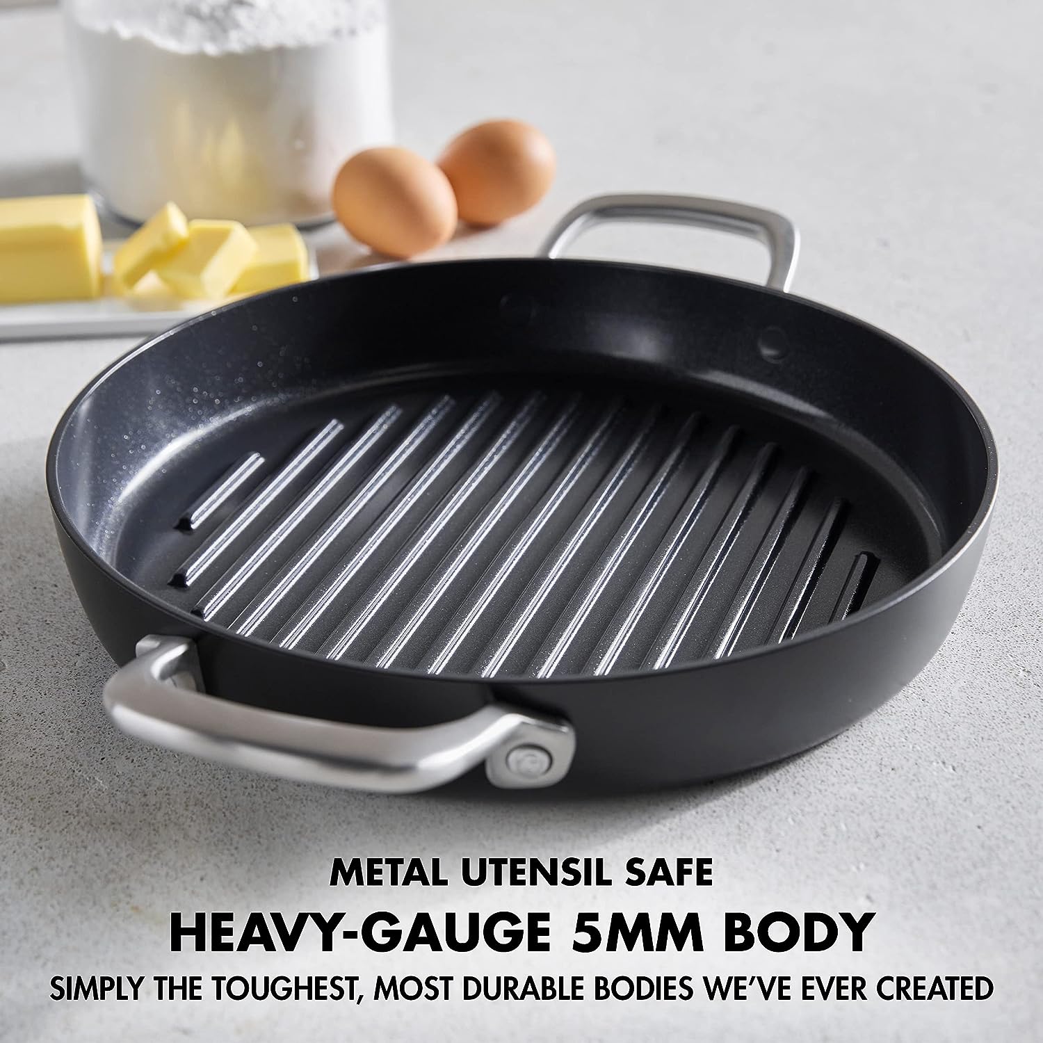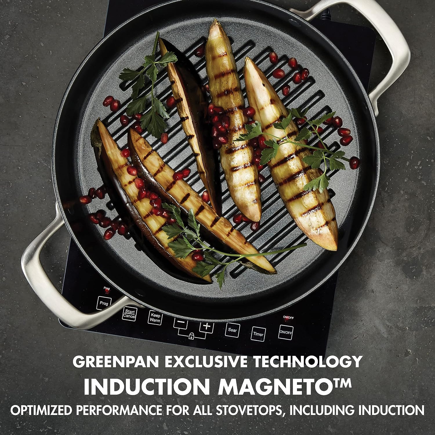 GreenPan GP5 Hard Anodized Advanced Healthy Ceramic Nonstick. 11″ Round Grill Pan. PFAS-Free. Induction. Dishwasher Safe. Oven & Broiler Safe. Black