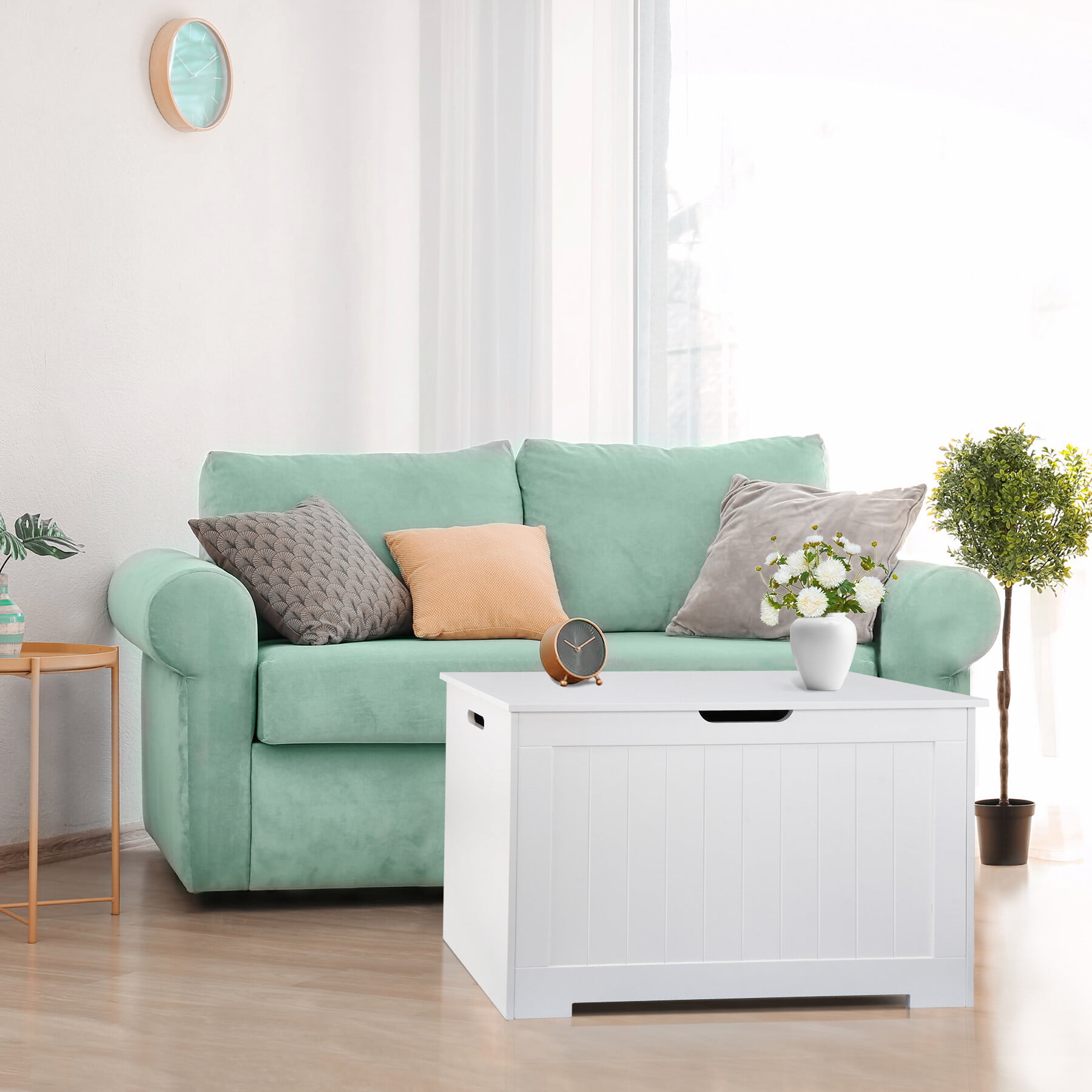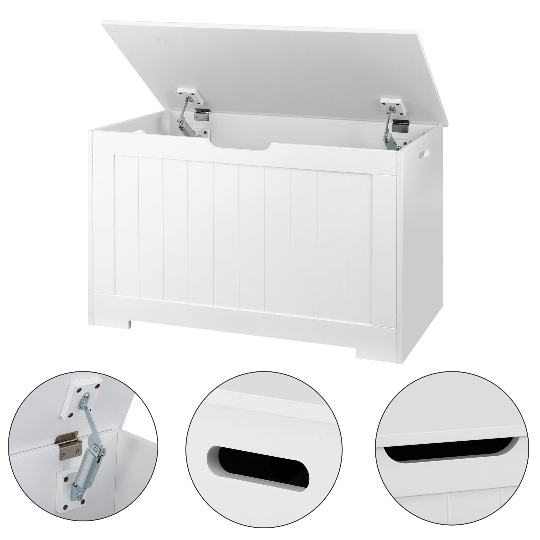HomGarden 30Inch MDF Child Toy Chest 150L Storage Box Cabinet W/Safety Hinged Lid. White