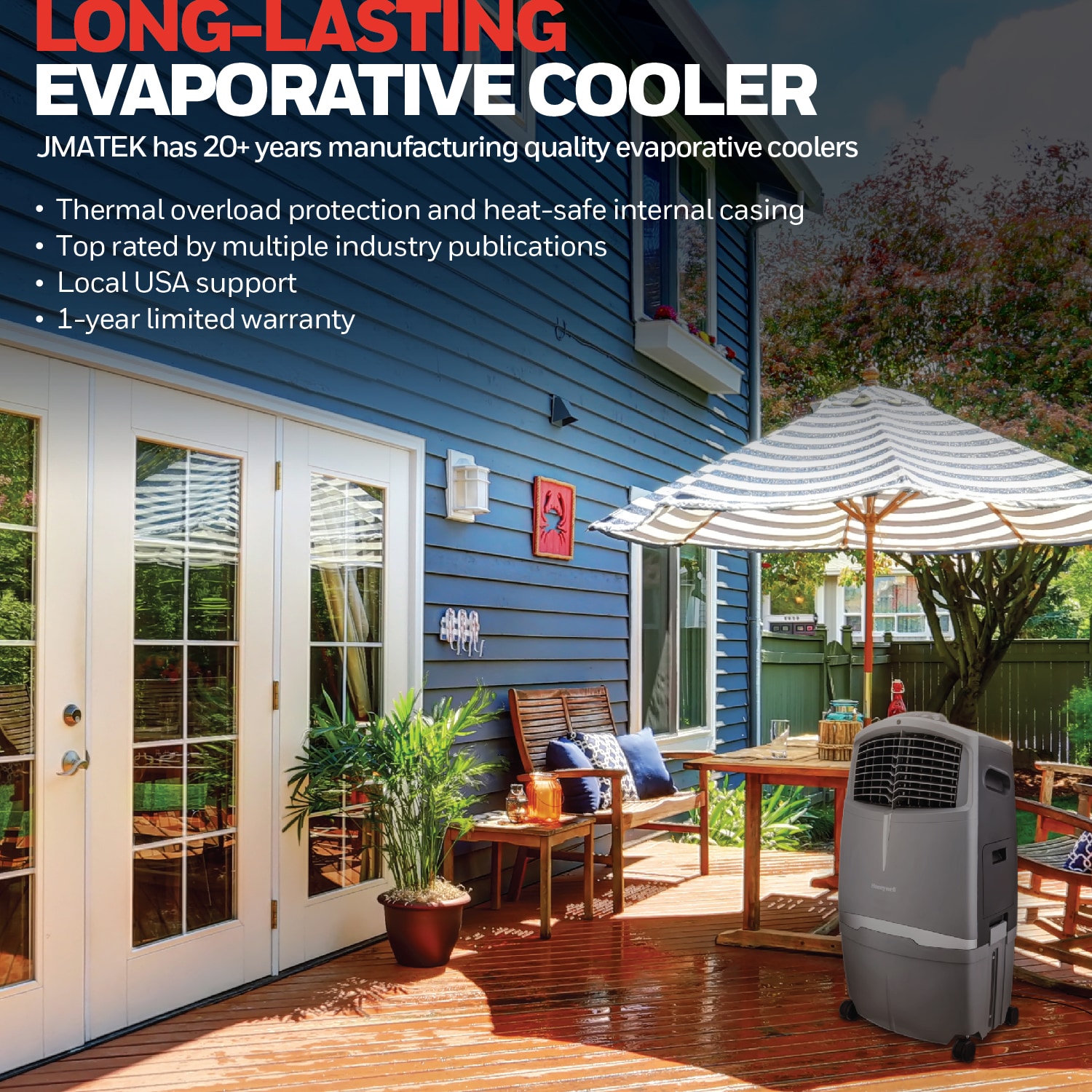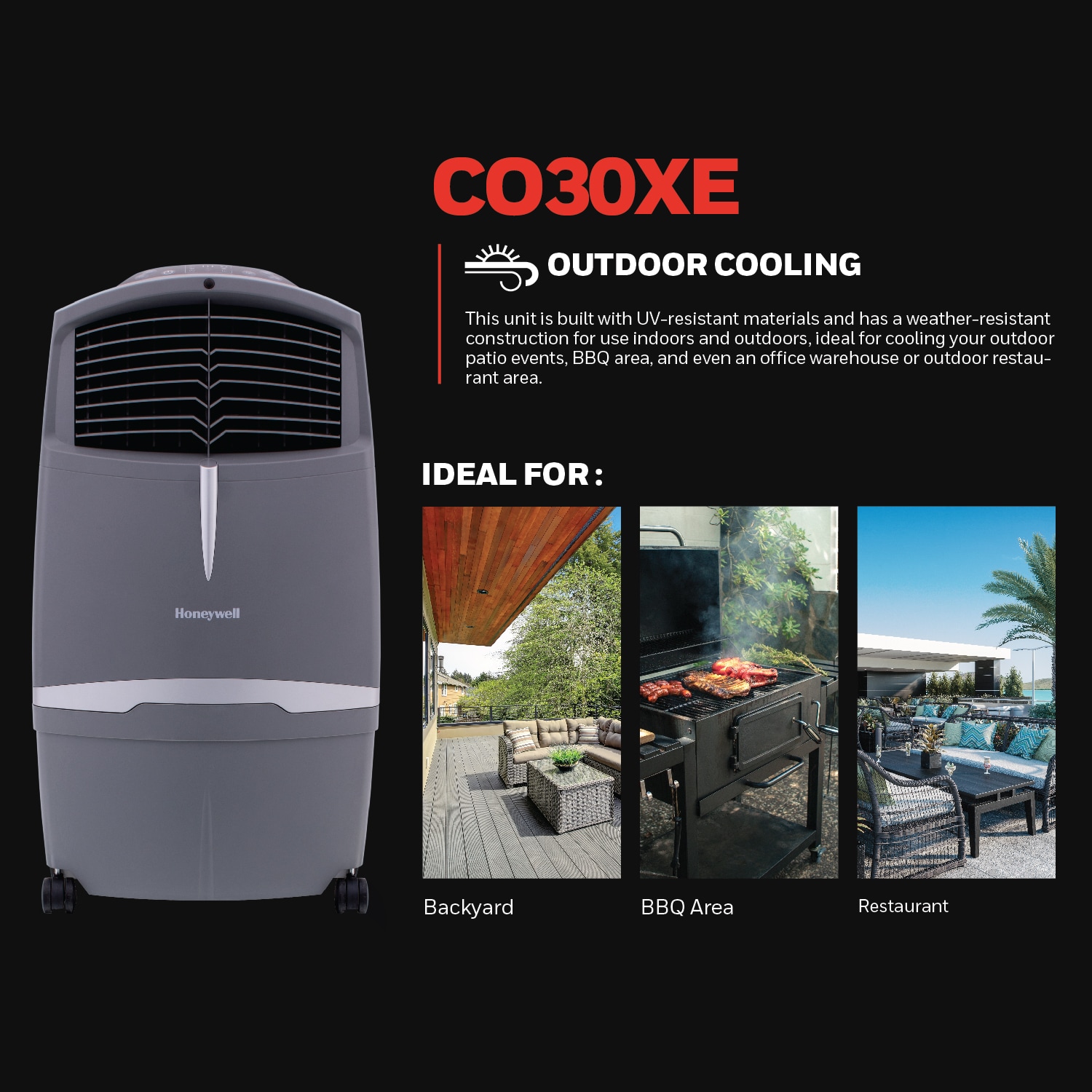 Honeywell 830-CFM 3-Speed Indoor/Outdoor Portable Evaporative Cooler for 505-sq ft (Motor Included)