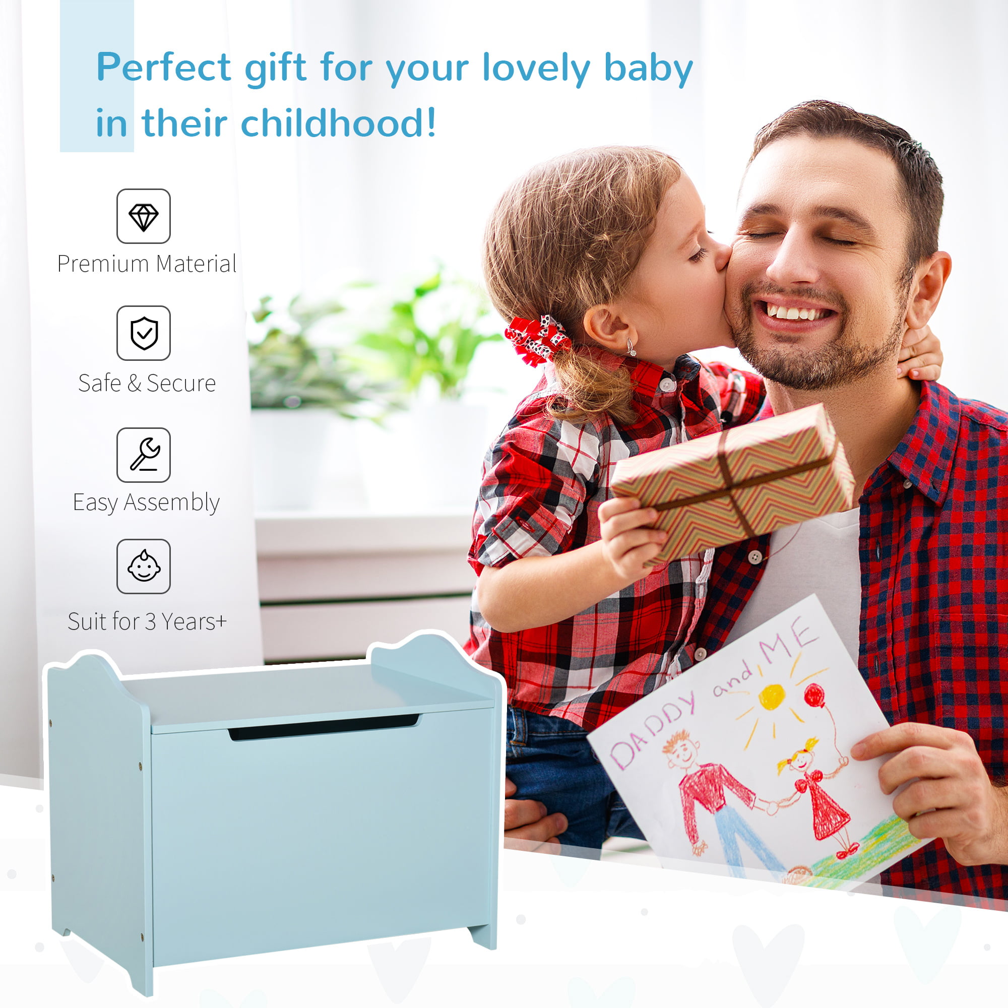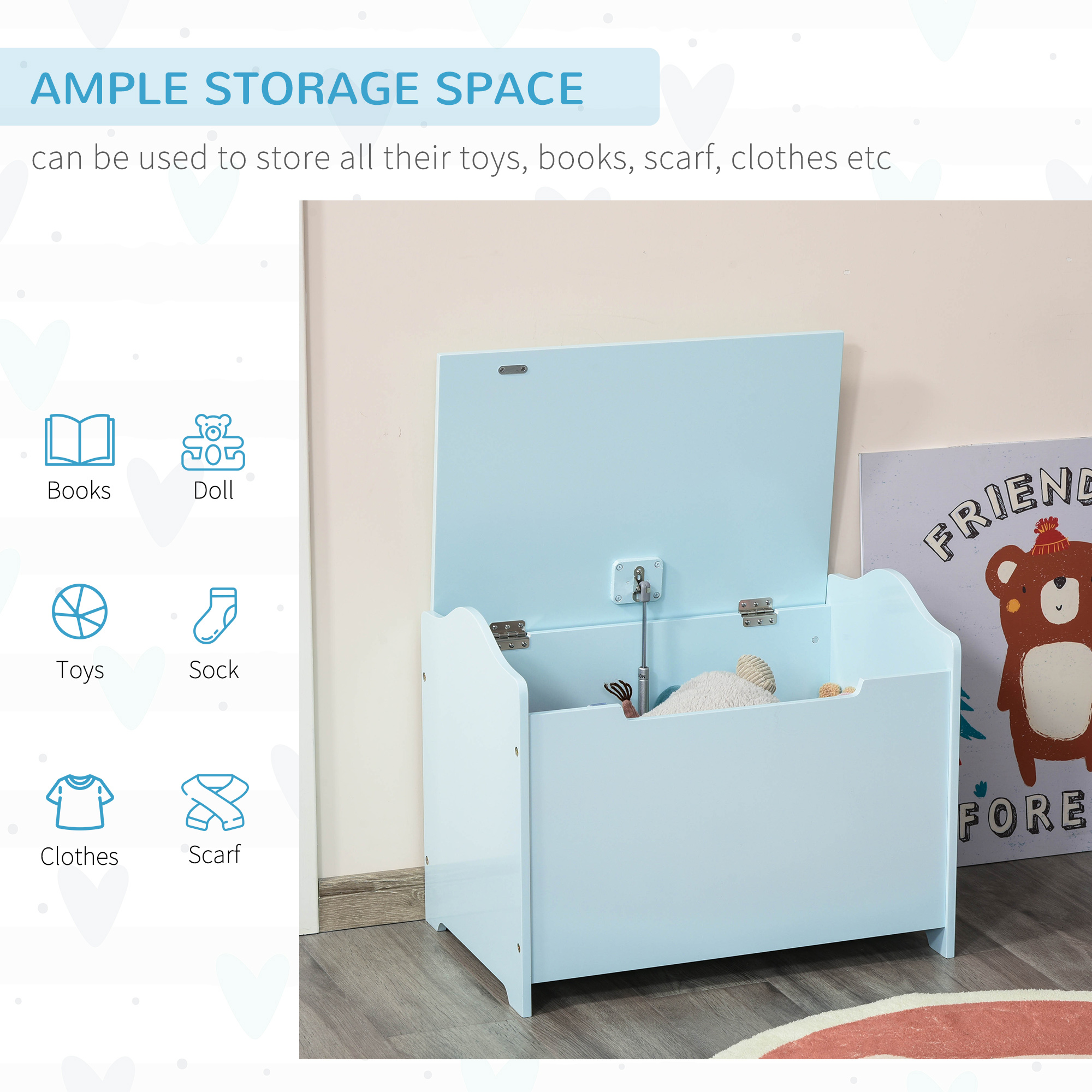 Qaba 2.76 Gallon Magnetic Safety Hinge Wood Toy Chest. Blue