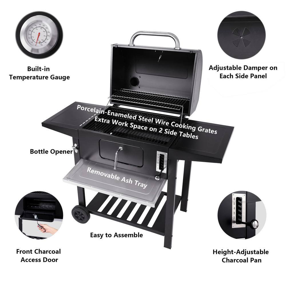 Royal Gourmet CD1824AX Charcoal Grill with 2 Side Table in Black
