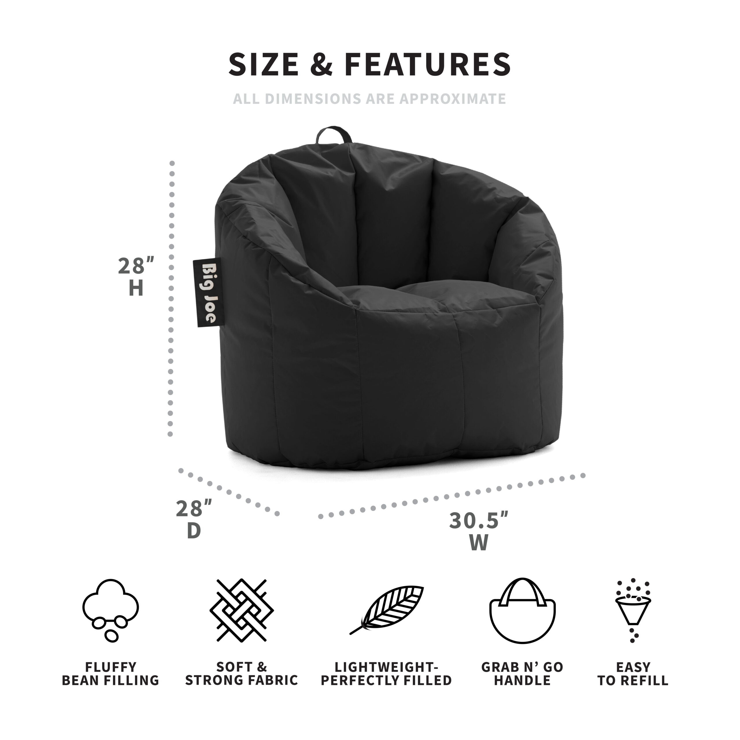 Big Joe Milano Bean Bag Chair. Smartmax 2.5ft. Black