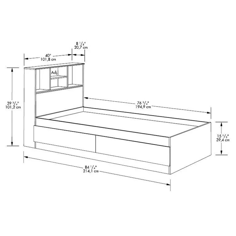 Mainstays Mates Storage Bed with Bookcase Headboard. Twin. Cinnamon Cherry Finish