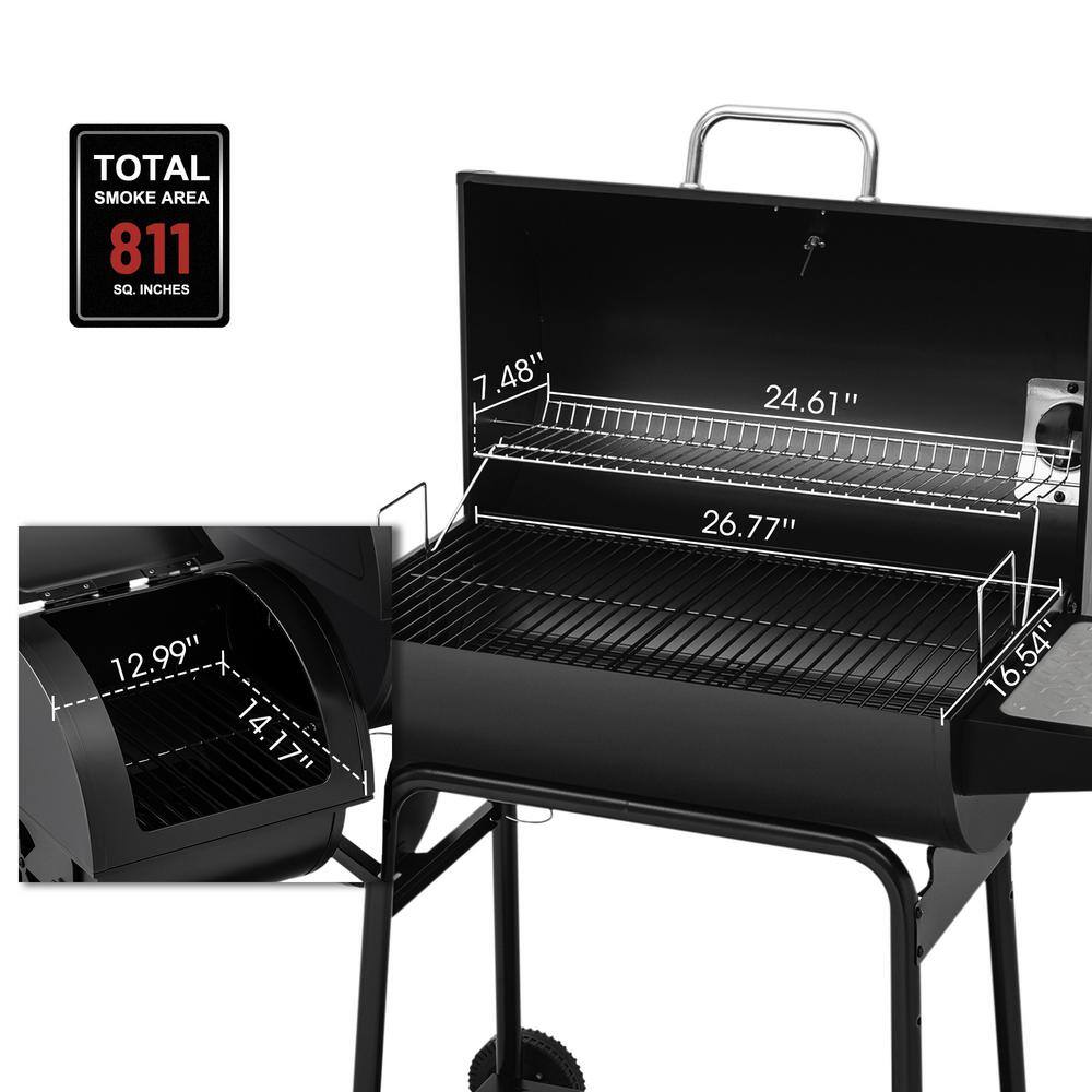 Royal Gourmet CC1830M Barrel Charcoal Grill 30 in Black. with Offset Smoker for Patio and Parties. Outdoor Backyard