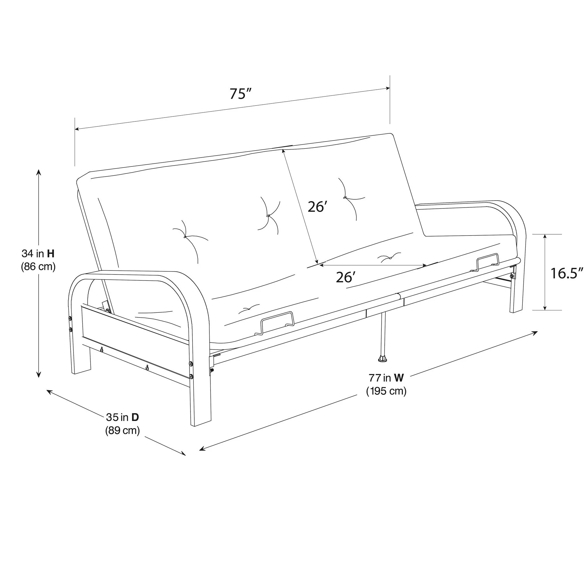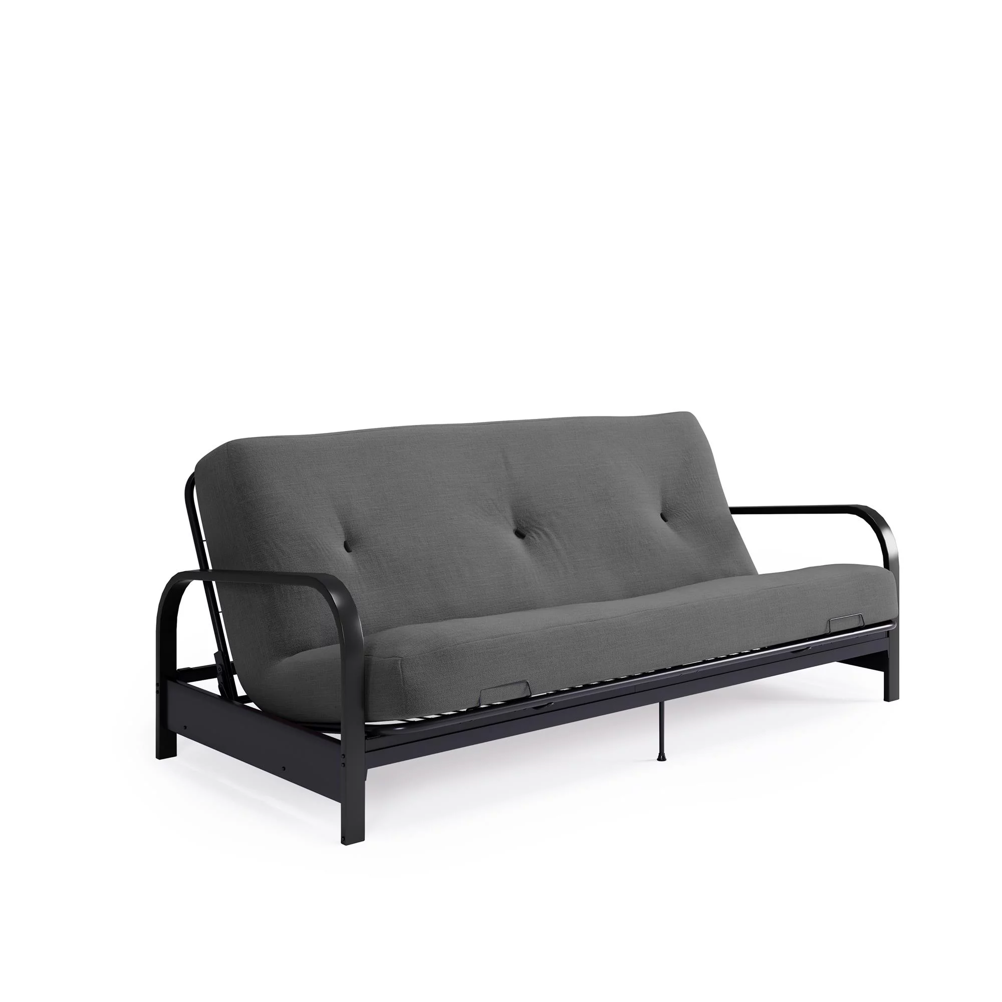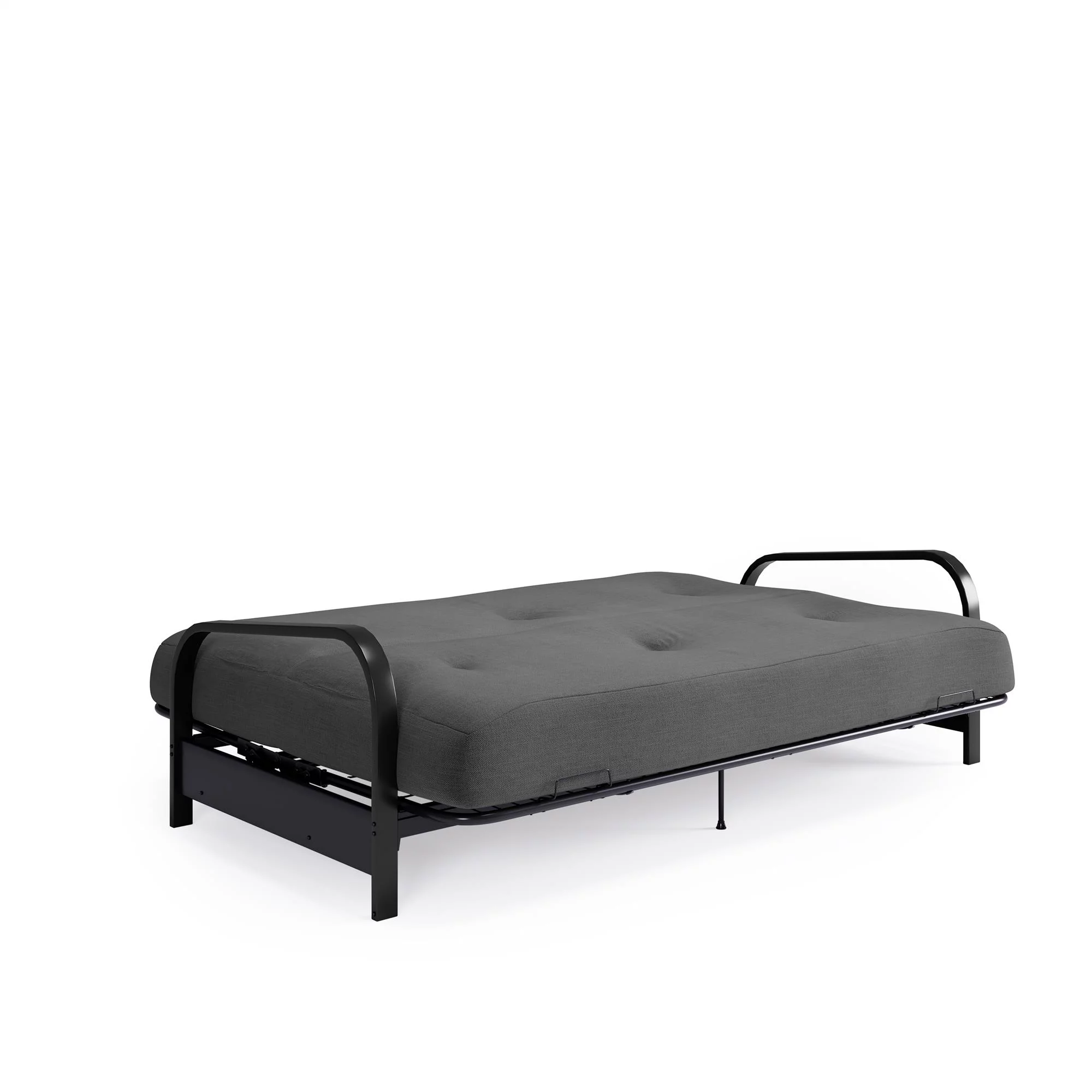 DHP Cleo Black Metal Arm Full Size Futon Frame with 6 Gray Mattress