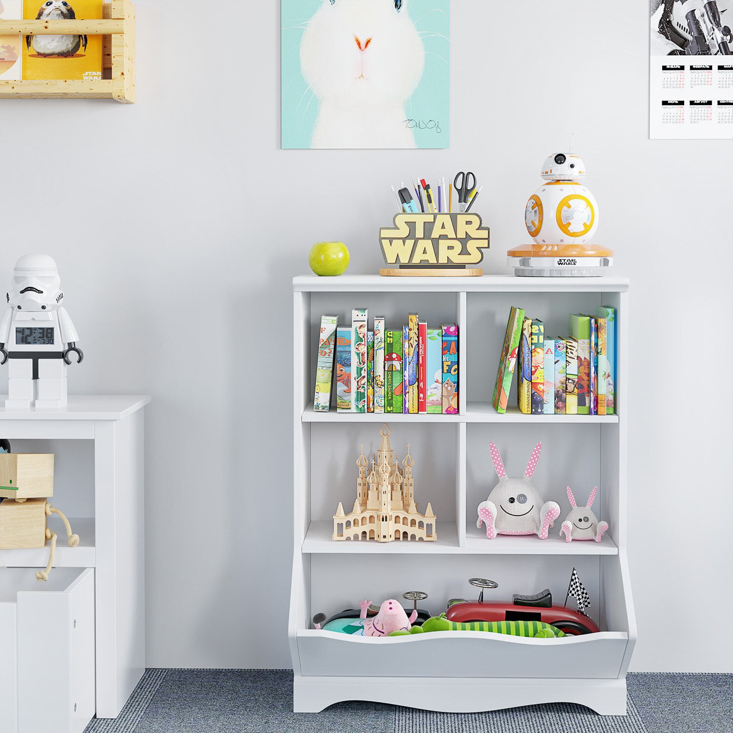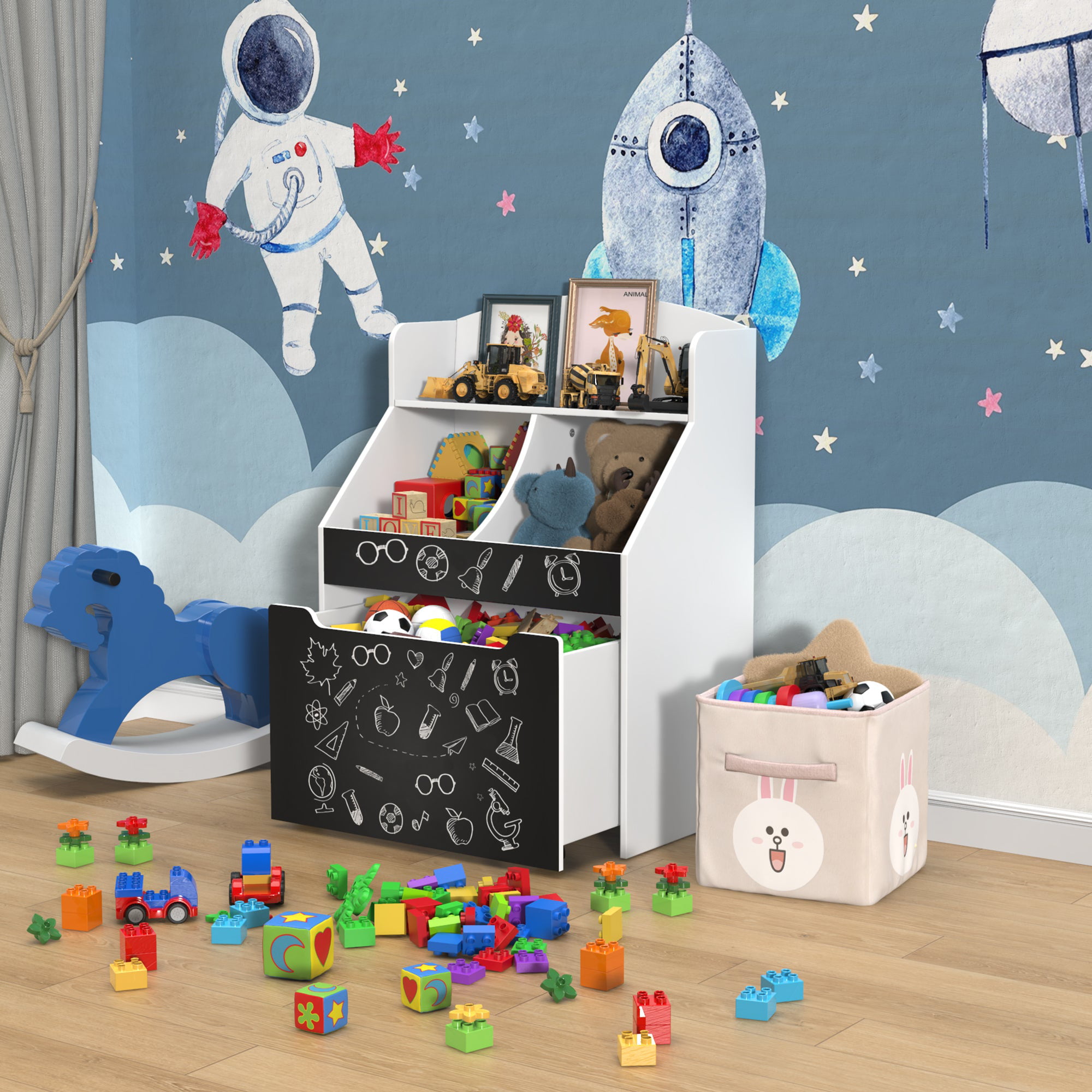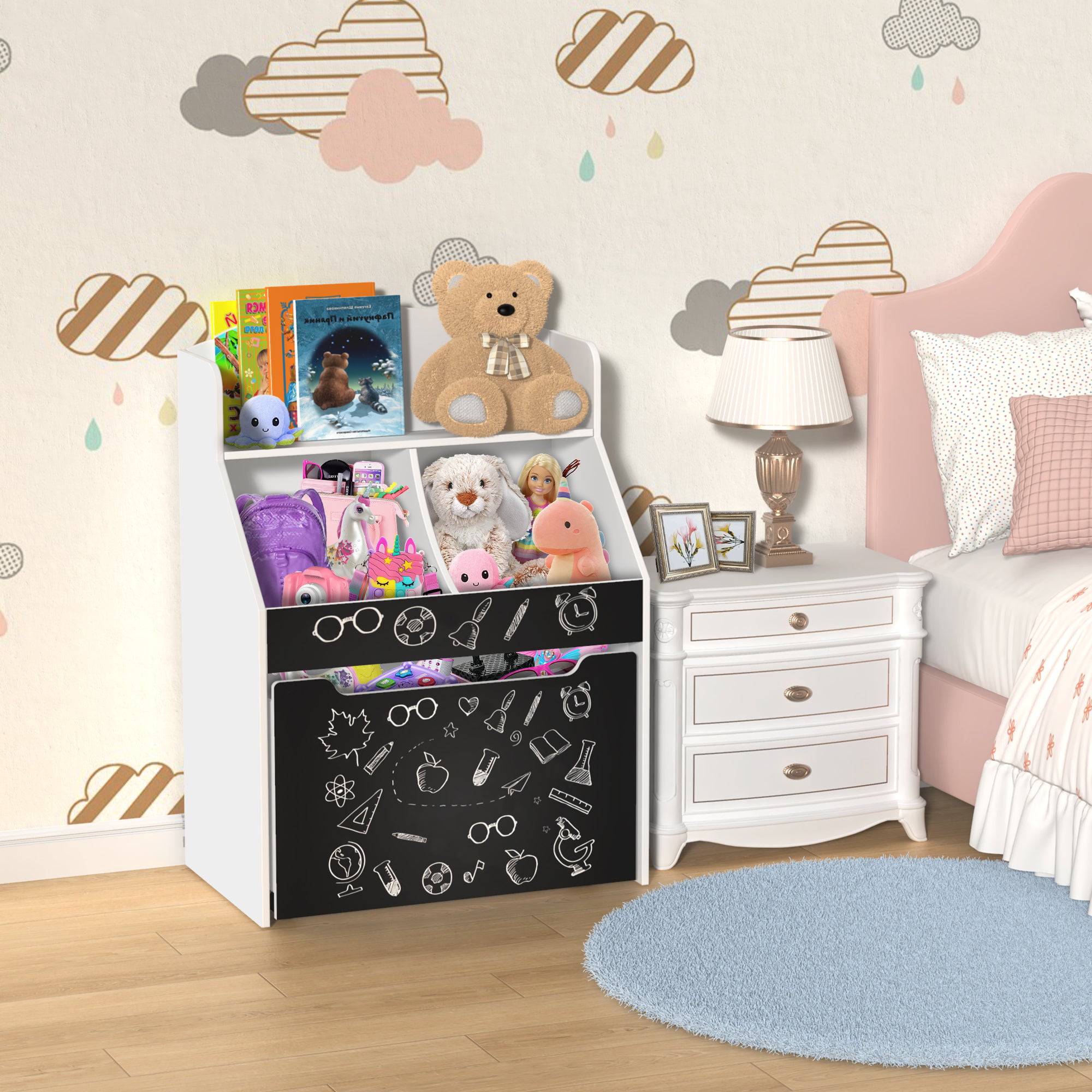 Toy Storage Organizer Kids Bookshelf Rolling Toy Box For Boys Girls Play Room Bedroom