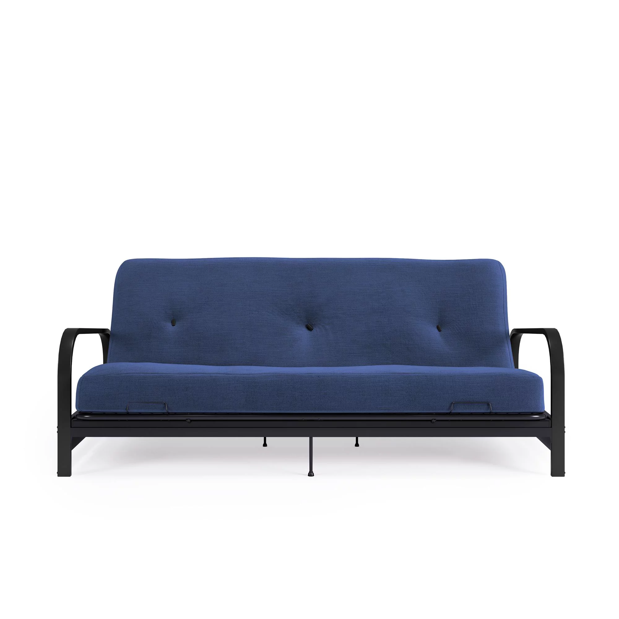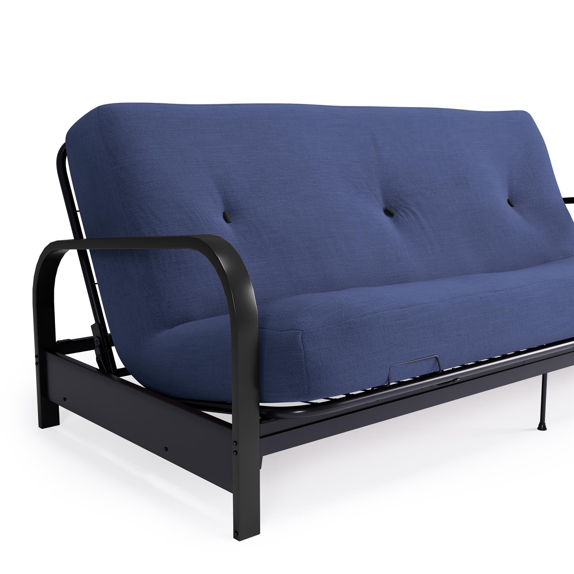 DHP Cleo Black Metal Arm Full Size Futon Frame with 6 Blue Mattress