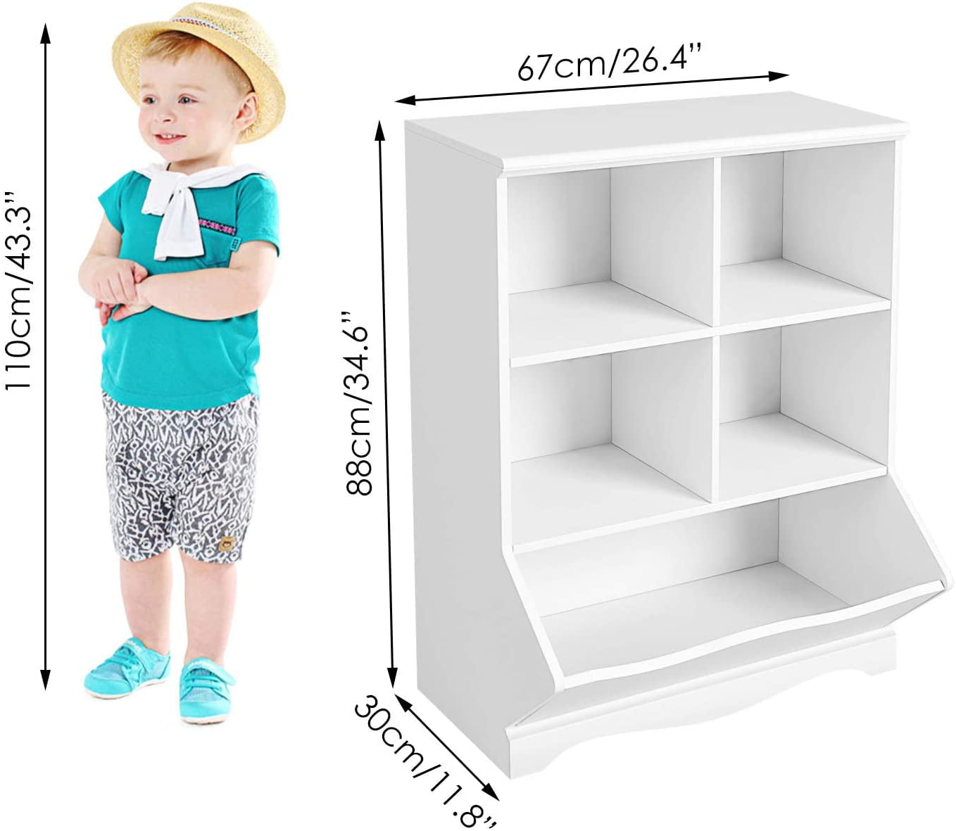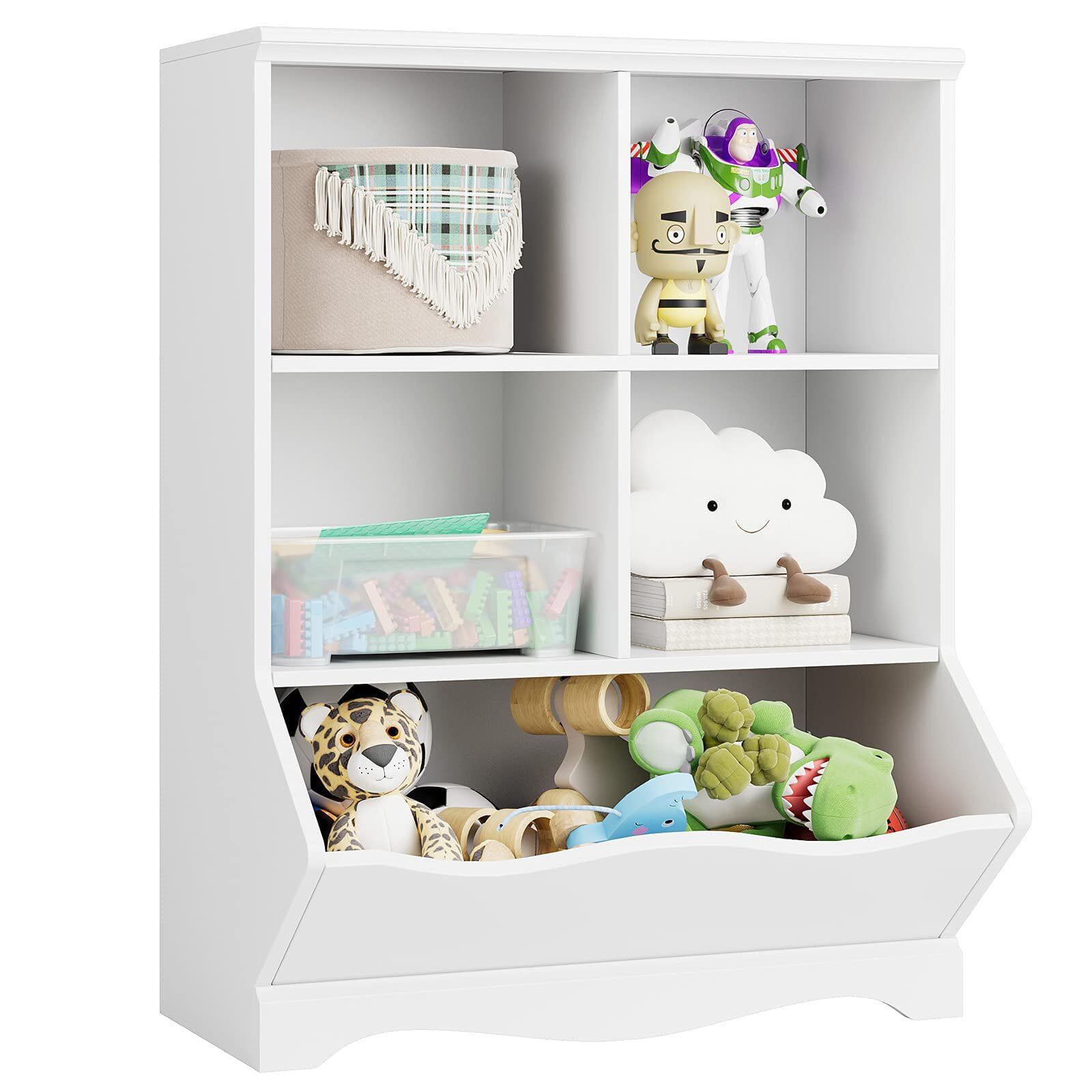 Homfa Kid-s Cubby Toy Storage Cabinet. Wood Toy Organizer of 5 Bins. Children-s White Bookcase. Toy Chest for Bedroom Living Room