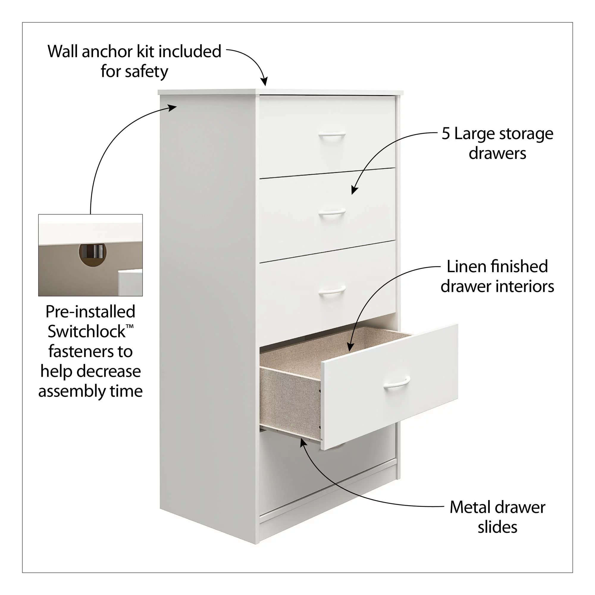 Mainstays Classic 5 Drawer Dresser. Gray