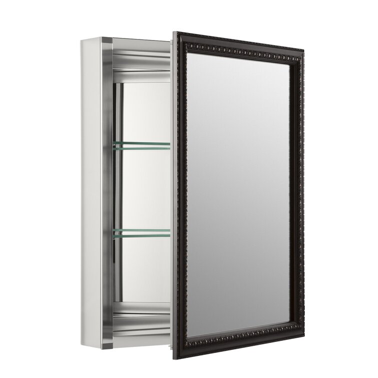 Kohler 2967-BR1 Recessed or Surface Mount Framed 1 Door Medicine Cabinet with 2 Adjustable Shelves