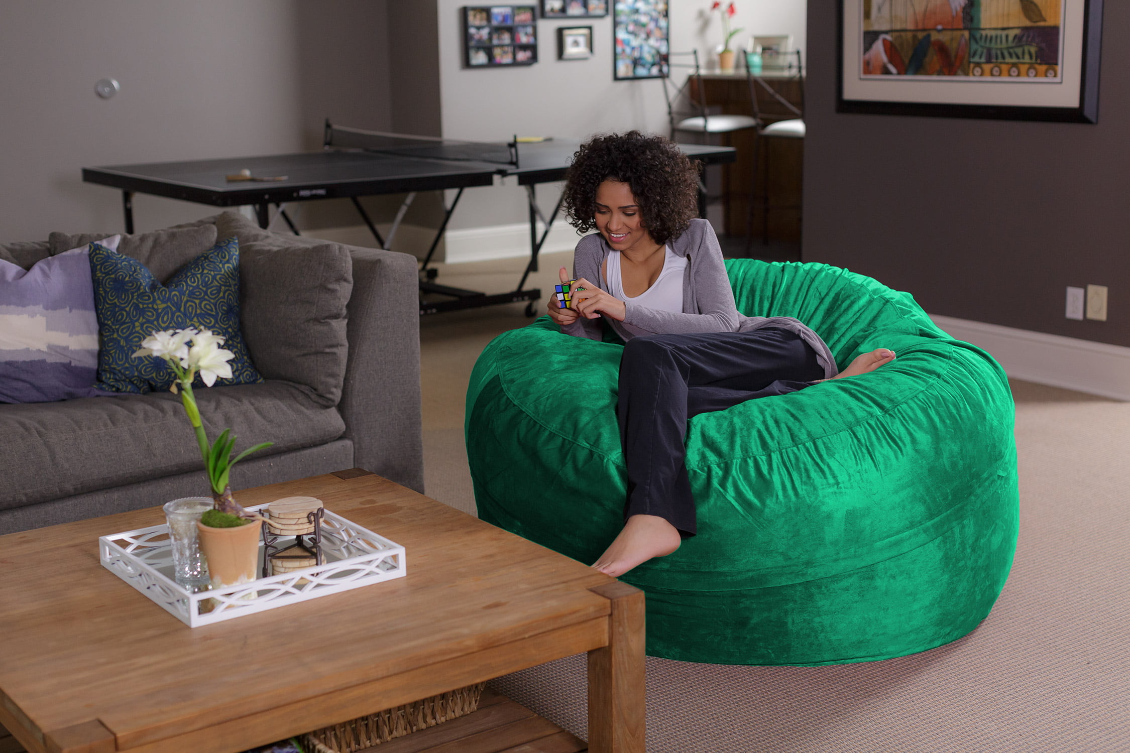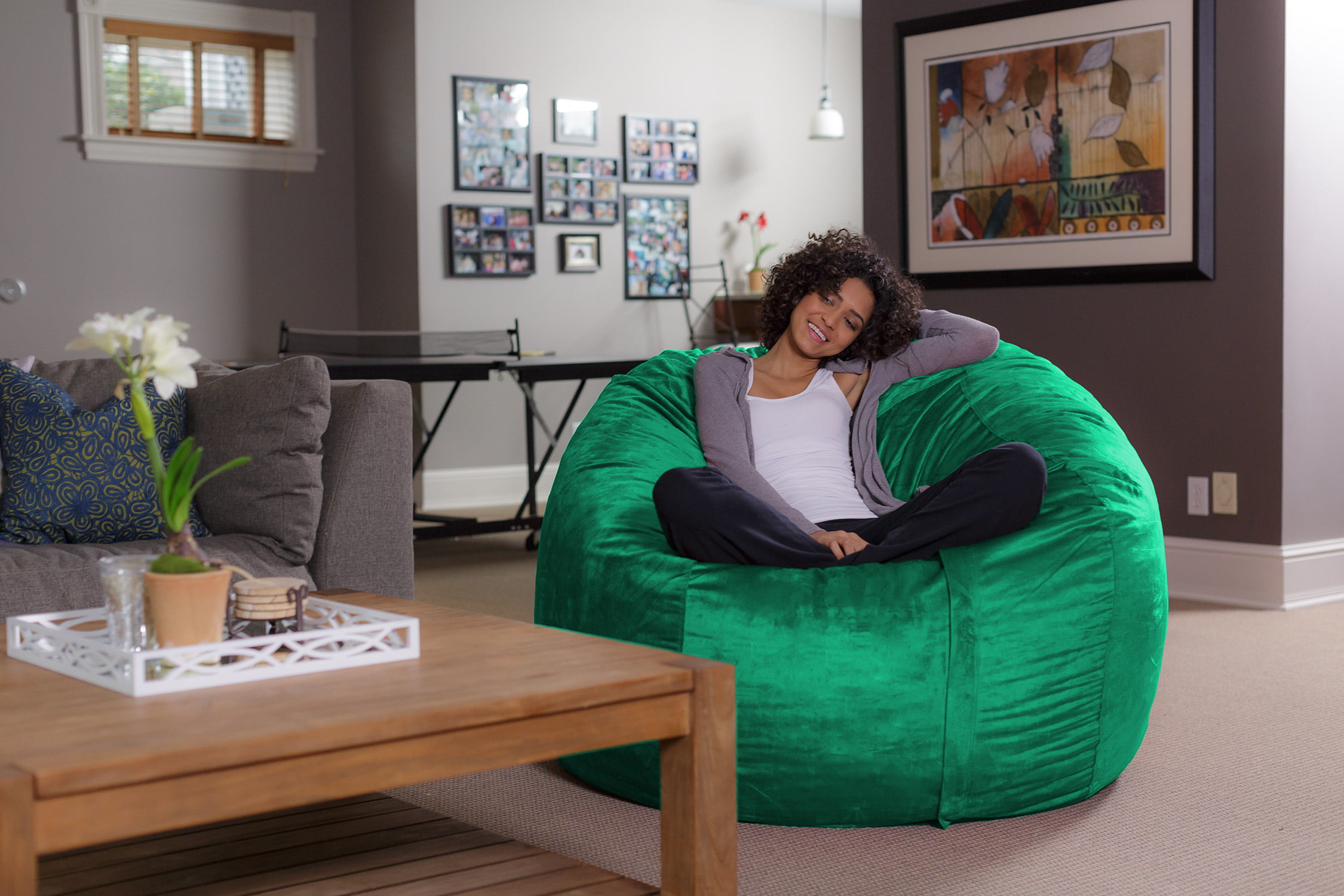 Sofa Sack Bean Bag Chair. Memory Foam Lounger with Microsuede Cover. Kids. Adults. 5 ft. Charcoal