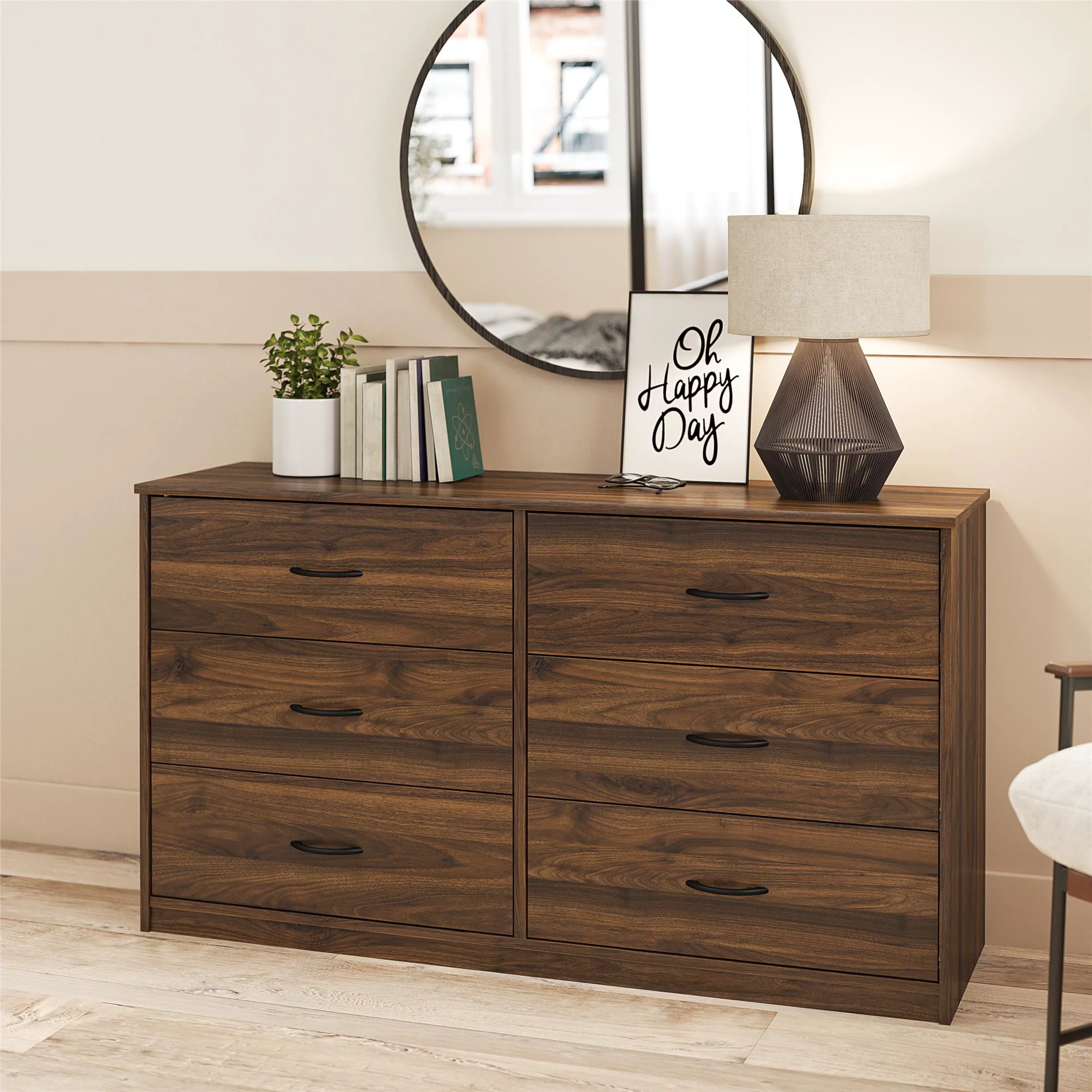 Mainstays Classic 6 Drawer Dresser. Walnut