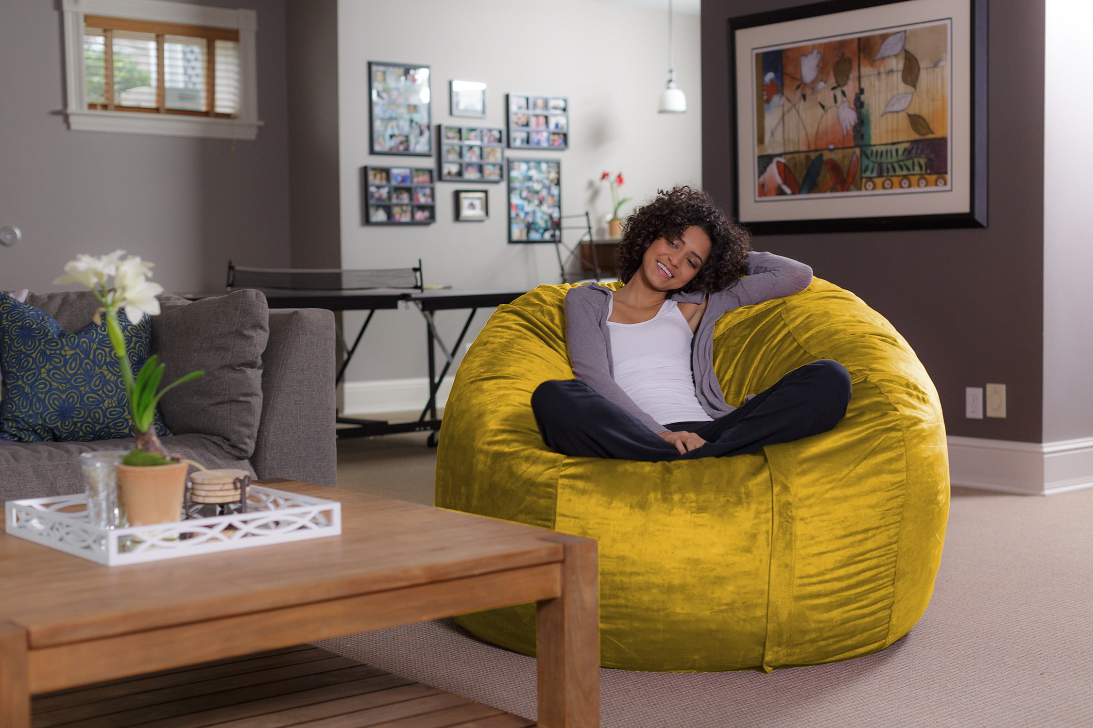 Sofa Sack Bean Bag Chair. Memory Foam Lounger with Microsuede Cover. Kids. Adults. 5 ft. Lemon
