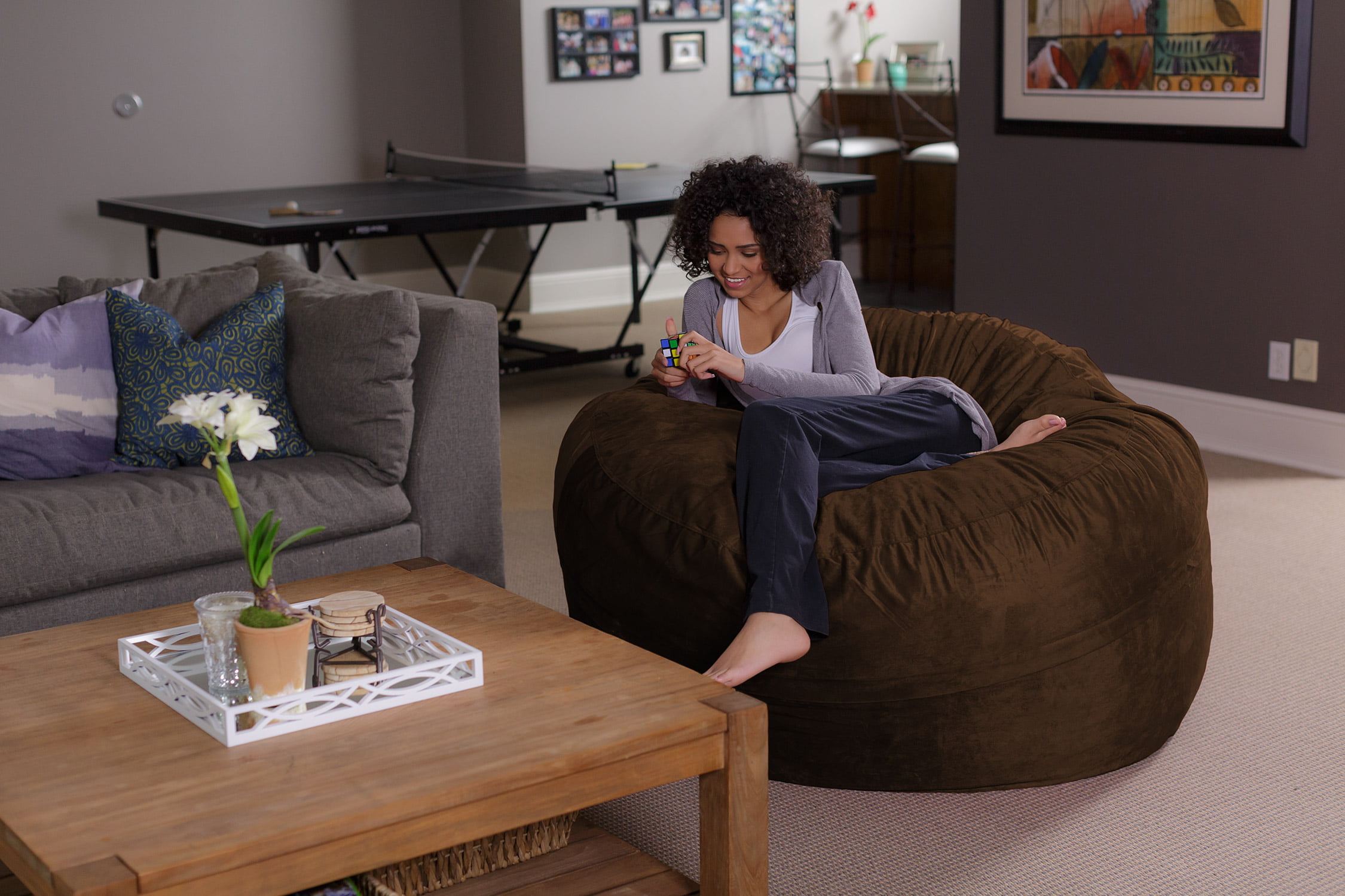 Sofa Sack Bean Bag Chair. Memory Foam Lounger with Microsuede Cover. Kids. Adults. 5 ft. Chocolate