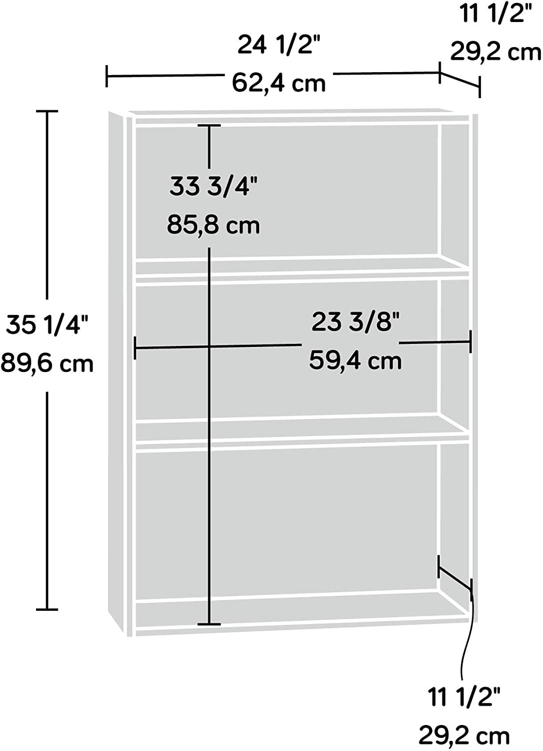 Sauder Beginnings 35″ 3 - Shelf Standard Bookcase. Cinnamon Cherry Finish