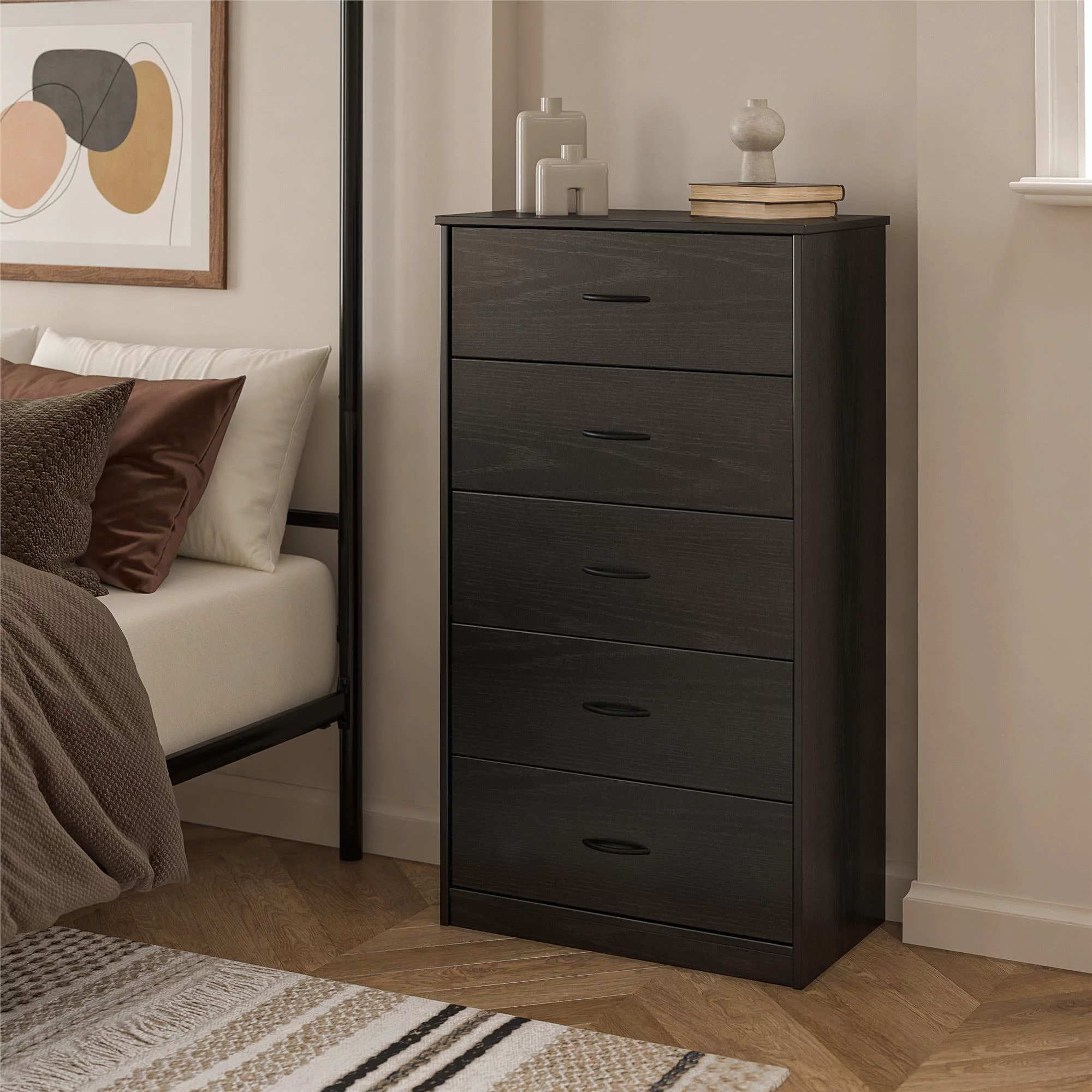 Mainstays Classic 5 Drawer Dresser. Black Oak