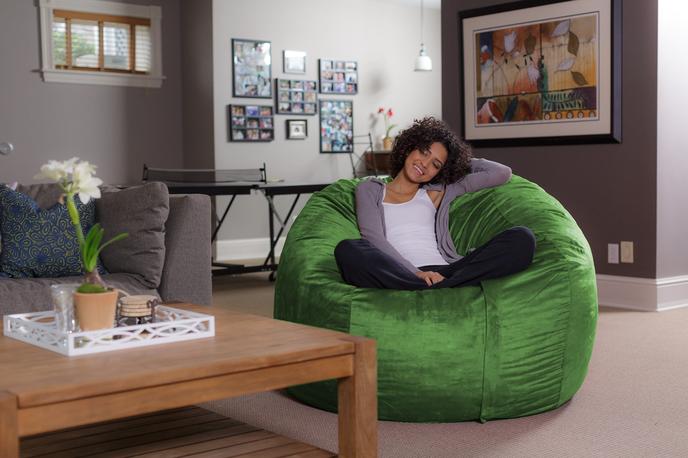 Sofa Sack Bean Bag Chair. Memory Foam Lounger with Microsuede Cover. Kids. Adults. 5 ft. Lime