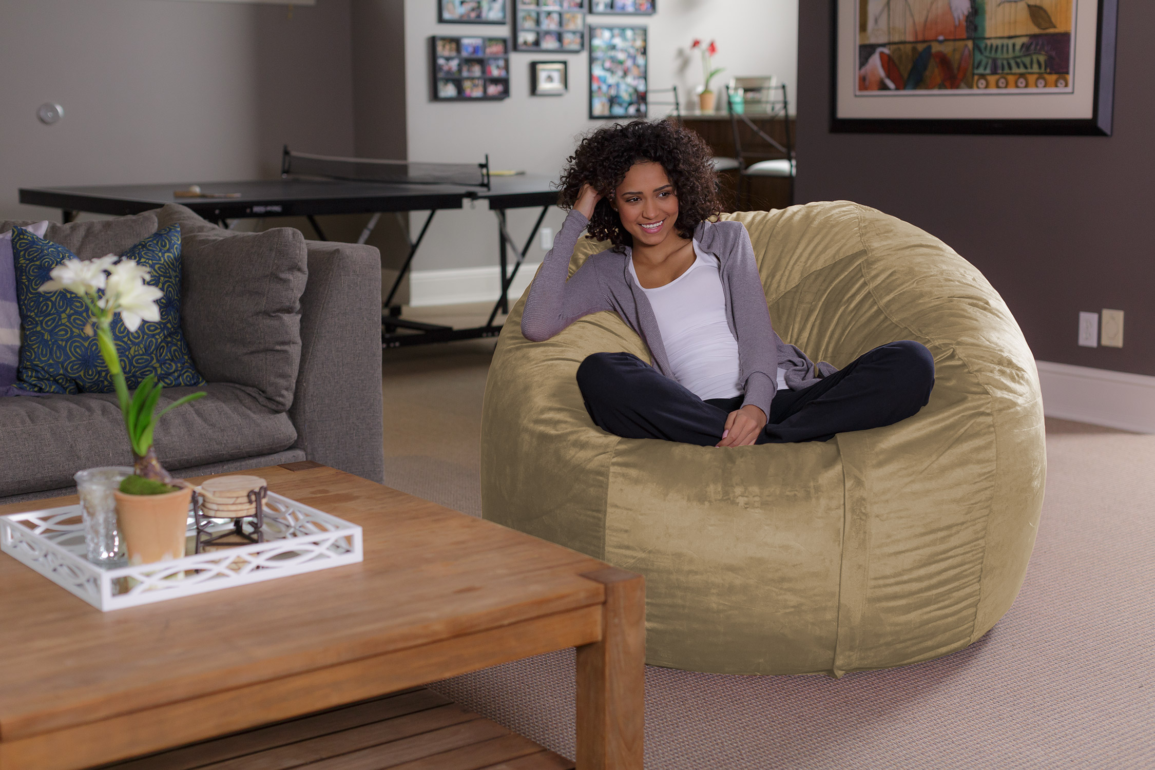 Sofa Sack Bean Bag Chair. Memory Foam Lounger with Microsuede Cover. Kids. Adults. 5 ft. Camel