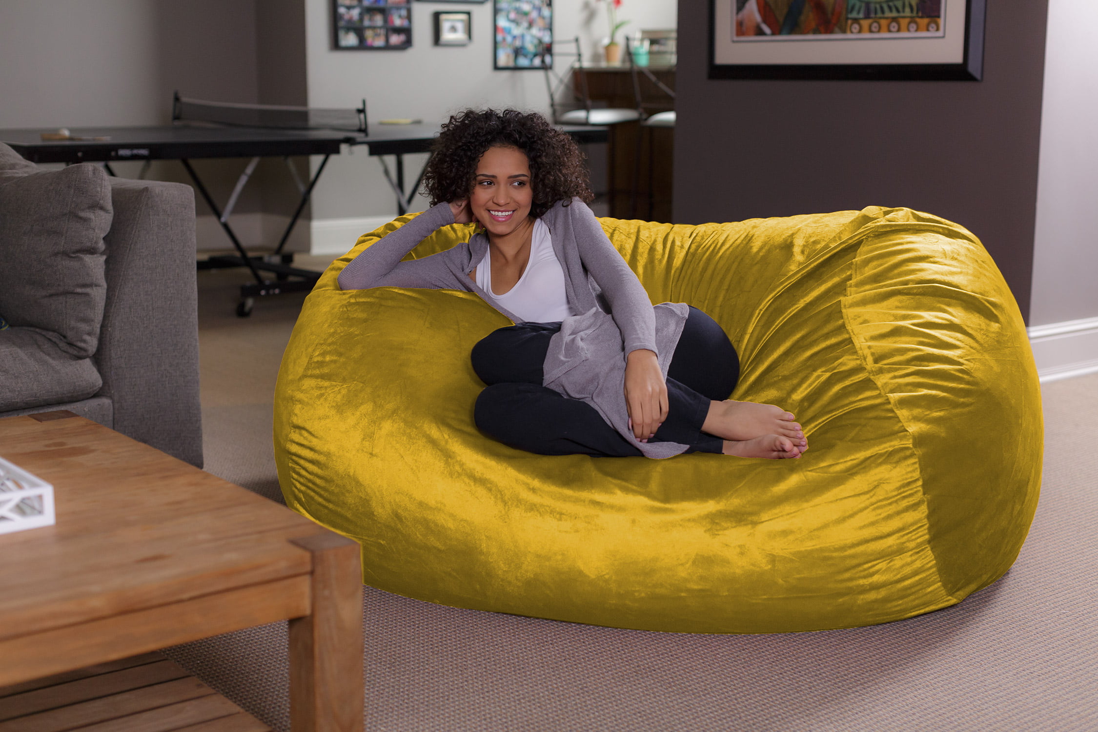 Sofa Sack Bean Bag Chair. Memory Foam Lounger with Microsuede Cover. Kids. Adults. 6 ft. Lemon